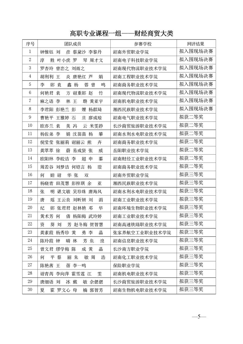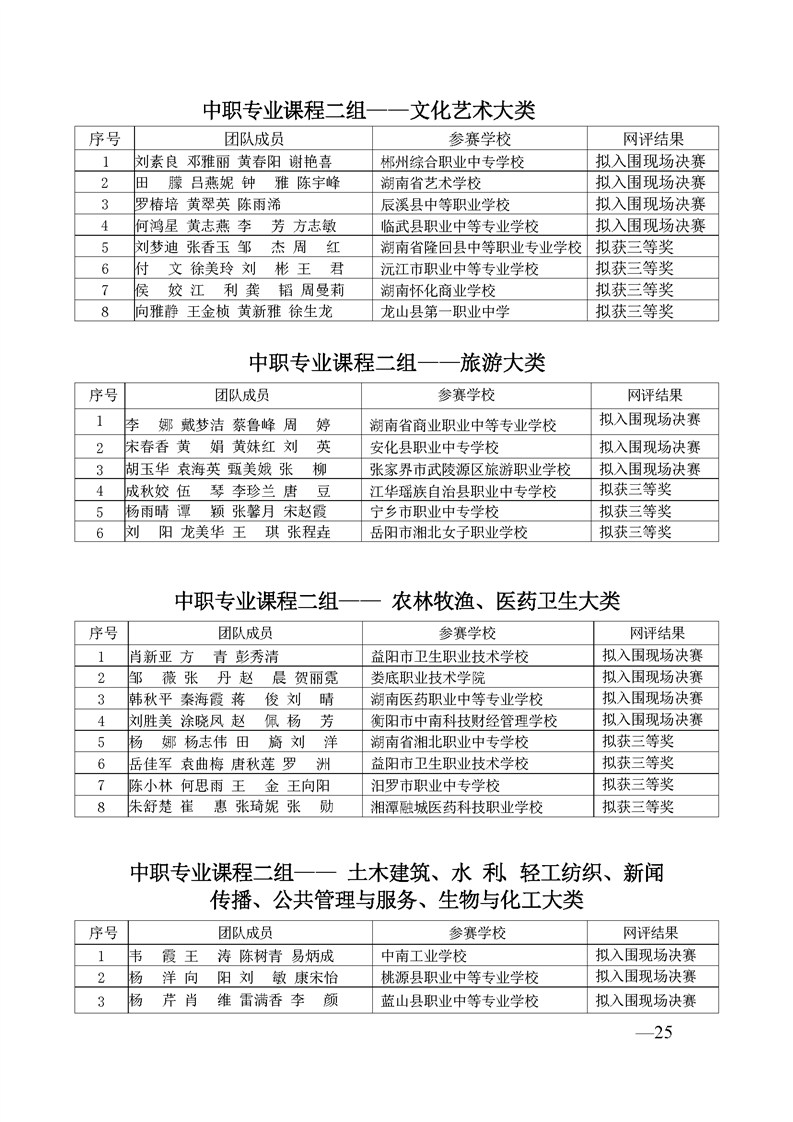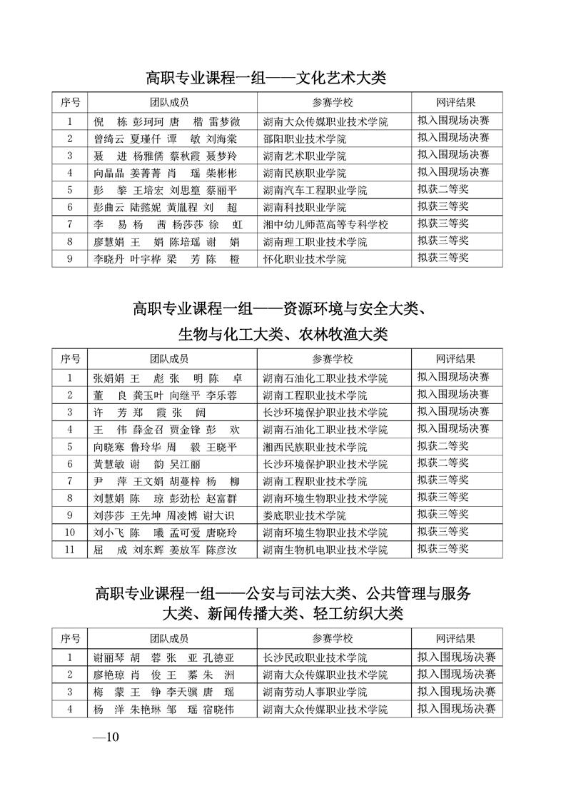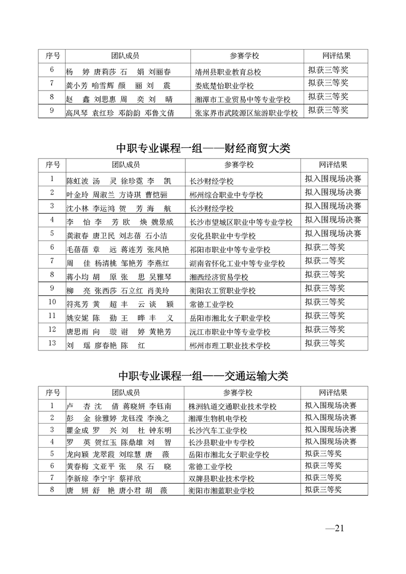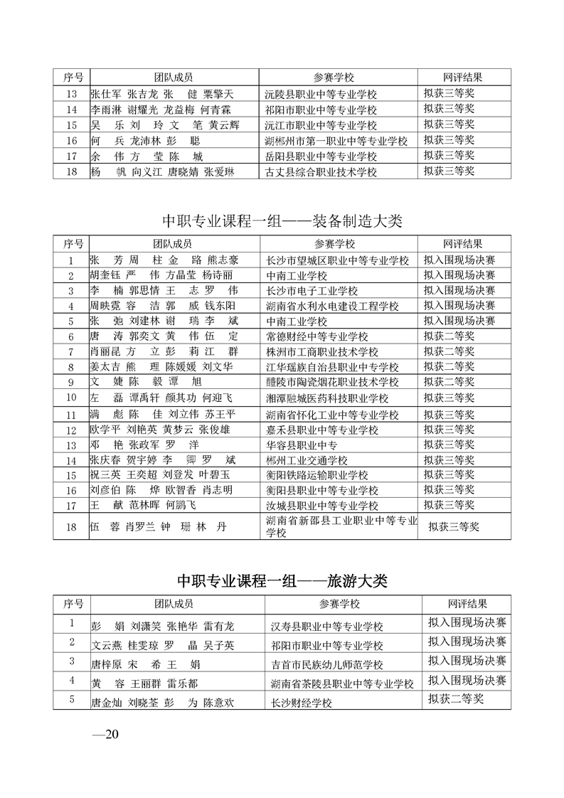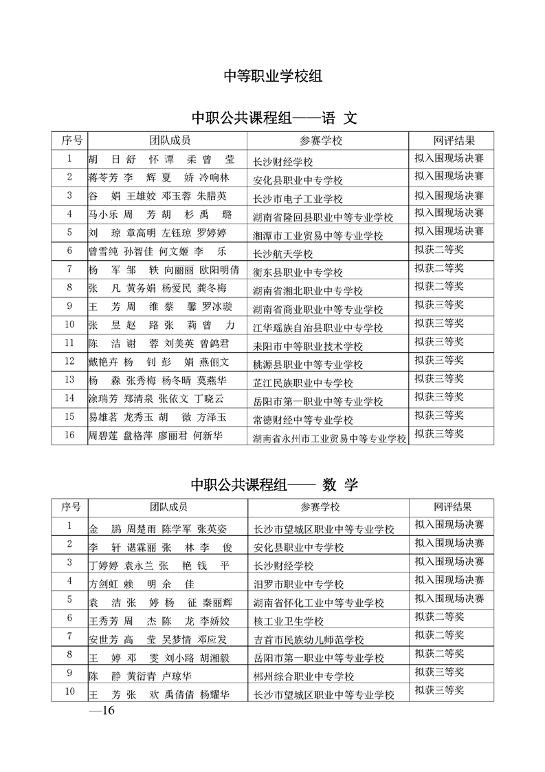 2023 年“楚怡杯”湖南省职业院校教师职业能力竞赛教学能力比赛入围现场决赛及拟获二、三等奖团队公示