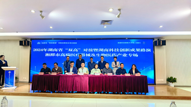 4月12日,湖南省“双高”对接专项路演湘潭分会场暨“智造莲城”创新成果转化项目路演高端医疗器械及生物医药产业专场活动成功举行,我校陈华娟团队的专利“叮咚智裤”受邀参加现场路演推介,并和湖南臻和亦康医疗用品有限公司朱俊时副总经理现场签约,实施成果转化。