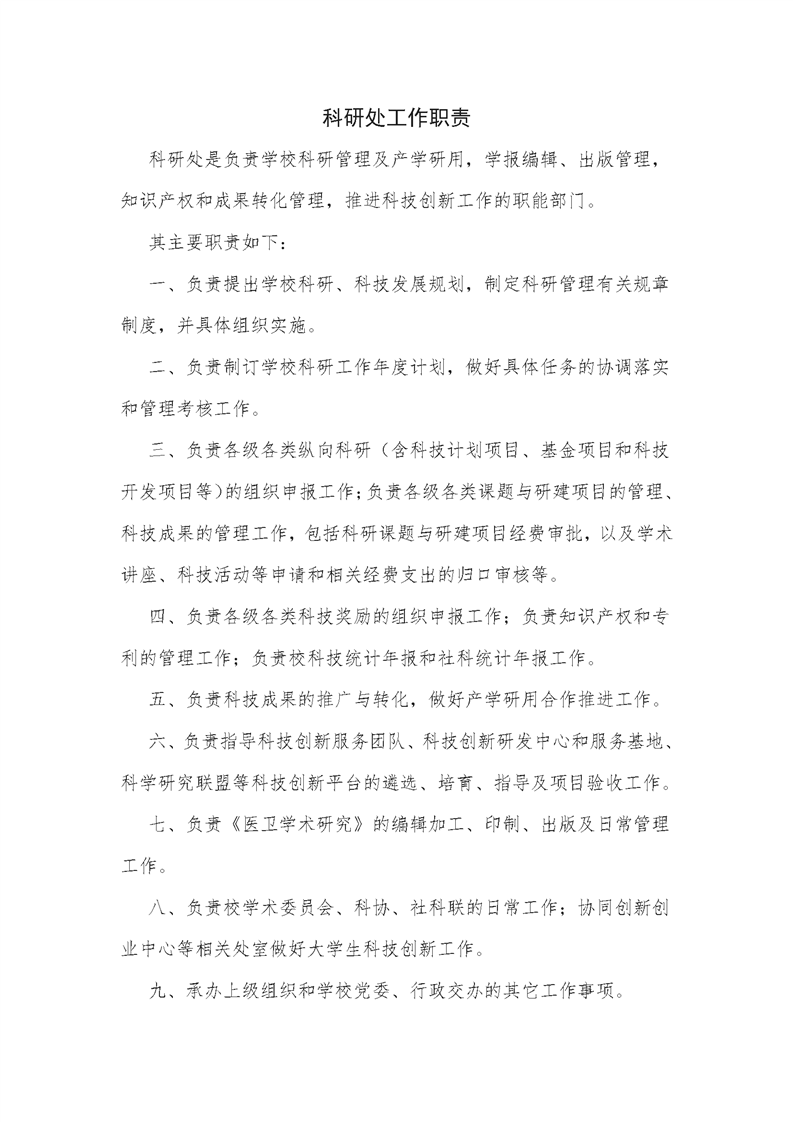 科研处工作职责