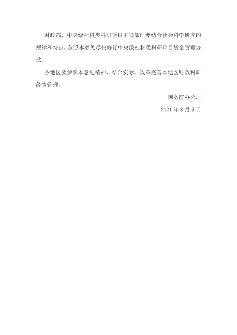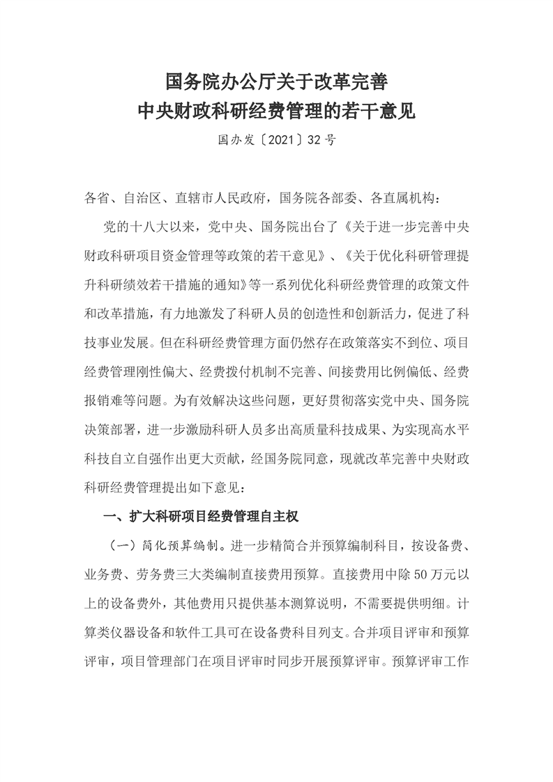 国务院办公厅关于改革完善中央财政科研经费管理的若干意见(国办发〔2021〕32号)