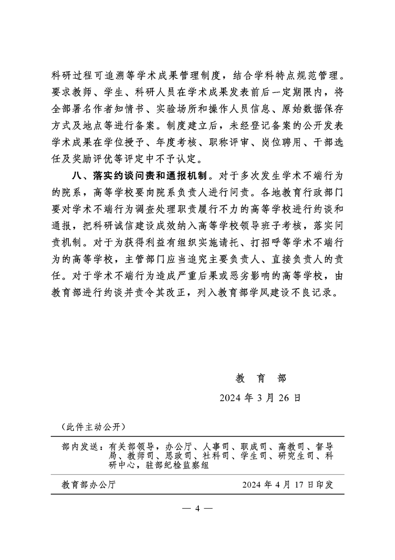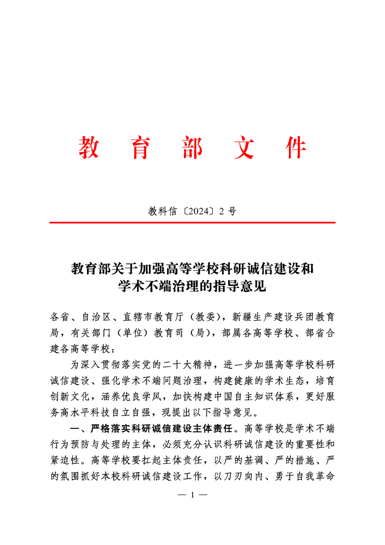 教科信〔2024〕2号 教育部关于加强高等半岛平台科研诚信建设和学术不端治理的指导意见