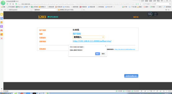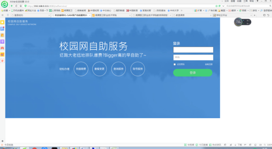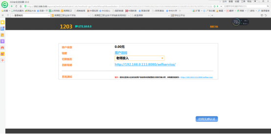 1、在浏览器上输入网址:http://192.168.0.111:8080/selfservice/ 登录校园网自助服务界面(如下图)