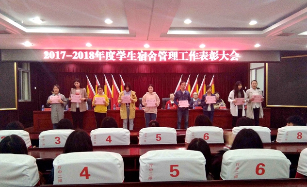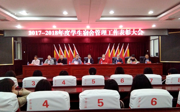 3月29日,我校2017-2018年度学生宿舍管理工作总结暨表彰大会在护理楼报告厅举行。校党委副书记左泽文出席并讲话,学生工作处、二级学院、宿管科等相关同志以及学生代表共240余人参会。 表彰大会上,宿管科负责人先做了2017-2018年度总结并宣读了表彰人员名单,学生宿舍自管会向清兰同学代表全体获奖的集体和个人做了发言。 左泽文副书记作了讲话。他对本次受到表彰的集体和个人表示热烈的祝贺,对宿管岗位上的全体员工及学生干部表示衷心的感谢,并强调要把宿管队伍建设好,确保宿舍安全稳定、文明卫生、管理服务水平上台阶。