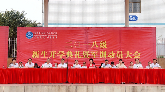 9月17日,我校2018级新生开学典礼暨军训动员大会分别在校本部新操场及河西校区操场举行。全体校领导出席,校属各单位党政主要负责人、各二级学院学生工作人员、部分师生代表及2018级全体新生参加典礼。典礼由校党委副书记左泽文主持。