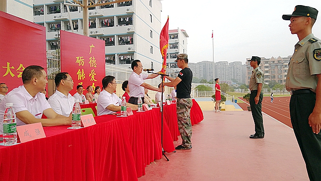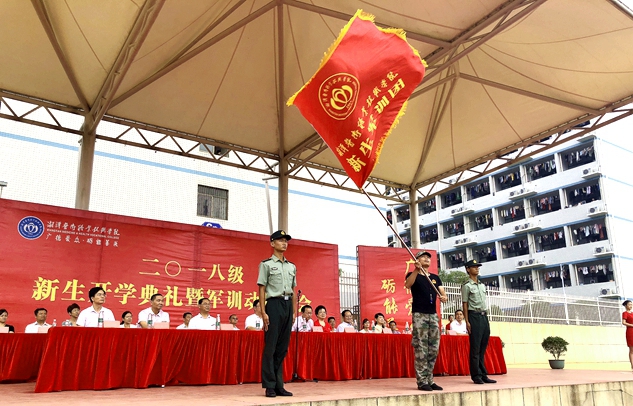党委书记刘建强为新生军训团授旗并宣布军训开始