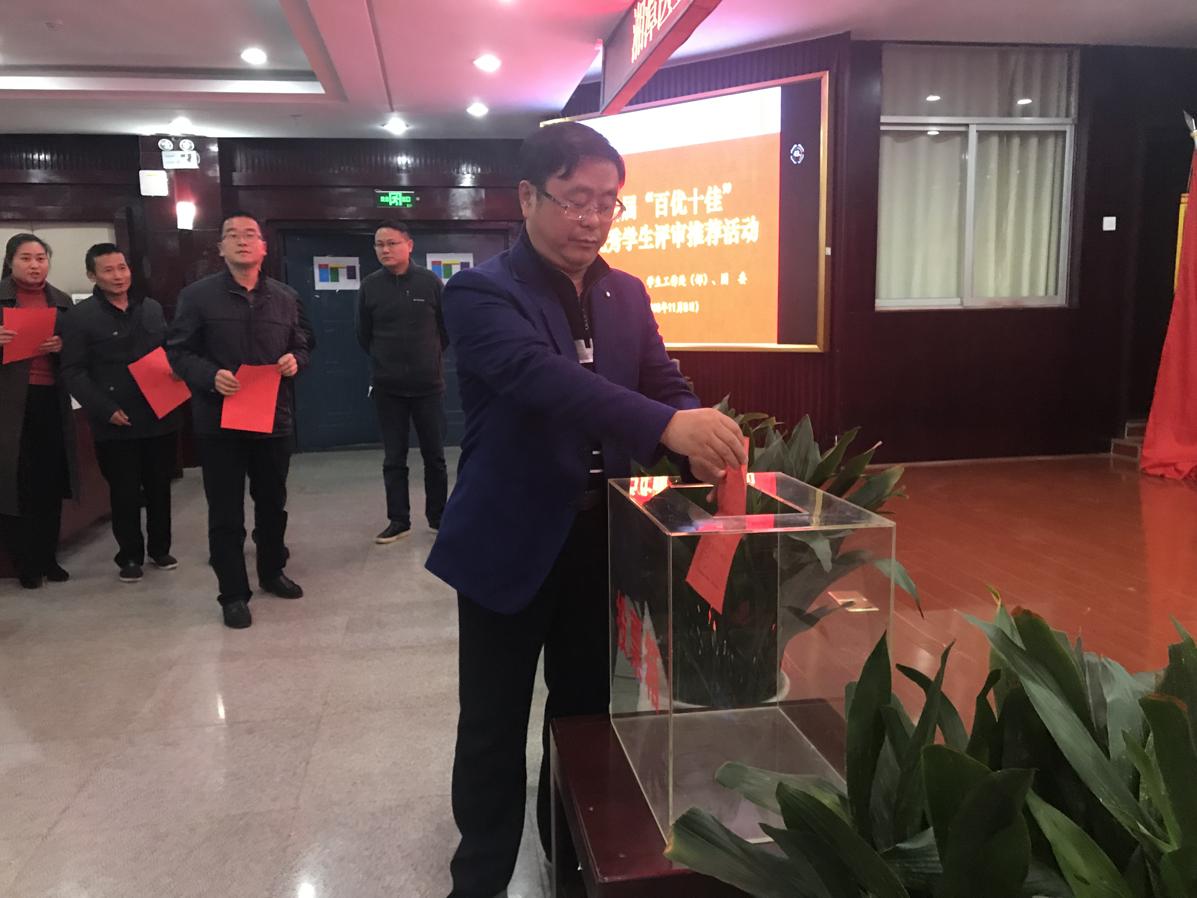 为表彰宣传学生中的先进典型,积极推进湖南省文明高校创建,11月8日,我校举行首届“百优十佳”评审推荐会。会议由党委副书记左泽文主持,半岛平台“百优十佳”评选领导小组成员及学生评委200人等参加推荐会。