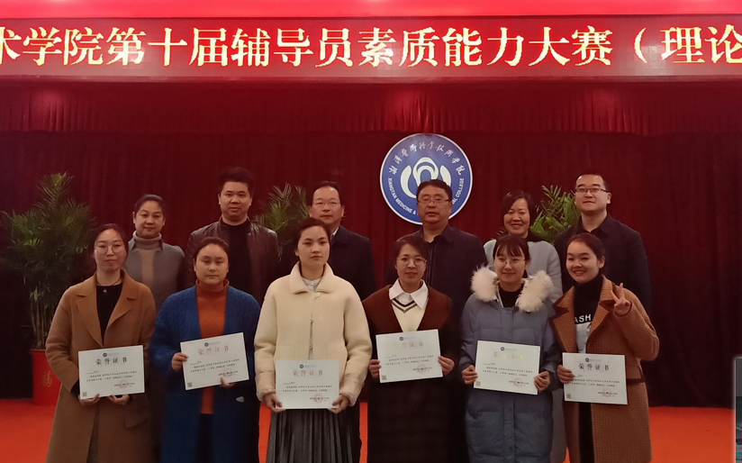 12月6日,我校第十届辅导员素质能力大赛在进行了最后一个环节理论宣讲后落下帷幕,校党委书记刘建强、校长廖晓燕、校党委副书记左泽文亲临比赛并颁奖,来自湘潭大学、湖南生物机电职院、湖南大众传媒职院、湖南财经工业职院、湖南城建职院等兄弟院校的专家担任评委。