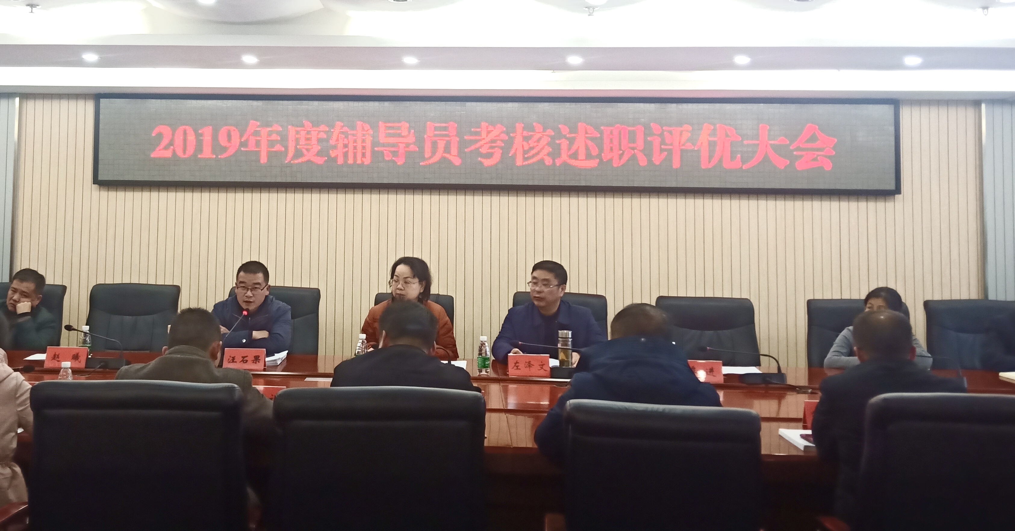 1月10日下午,我校2019年度辅导员考核述职评优大会在护理楼八楼会议室举行。校长廖晓燕、校党委副书记左泽文出席会议并听取了全体辅导员的工作述职,党委组织部、人事处、学生工作处、团委负责人和各二级学院党总支书记、副书记、学生科长参加会议。