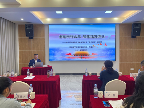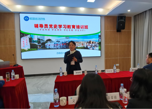 为深入开展党史学习教育,推进辅导员在党史学习教育活动中学习党的历史、感悟革命精神、激发奋进力量,5月28-29日,我校辅导员党史学习教育培训班在湘潭市党员培训教育培训基地举行。校长廖晓燕、校党委副书记左泽文和相关部门学院负责人、全体专兼职辅导员参加培训。