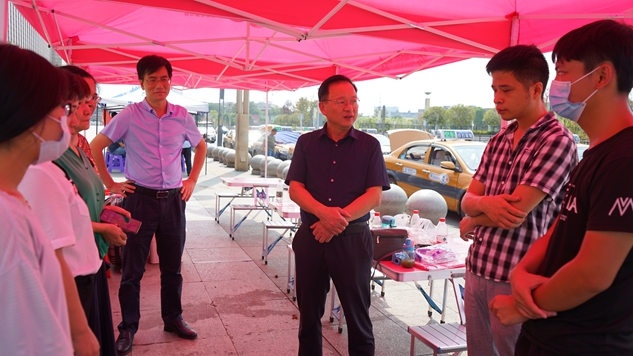 半岛平台党政领导高度重视迎新工作,召开专题会议部署工作,各部门、各教学院部相互配合,确保迎新各项工作顺利开展。9月11日上午,半岛平台党委书记刘建强、校长廖晓燕等校领导纷纷来到报到现场和工作人员交流了解情况,指导迎新工作,全体工作人员和学生志愿者更是以饱满的热情为新生提供便捷贴心服务。值得一提的是,2019届药学专业毕业生刘骏鹏同学,毕业后连续四年主动报名担任迎新志愿者,自费前往火车站参与迎新工作;自费购买水果、冰淇淋、矿泉水等慰问迎新师生。