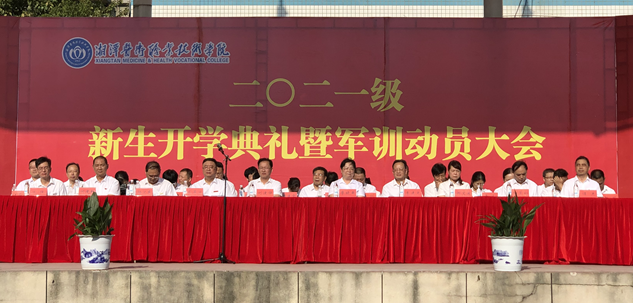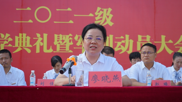 9月13日,我校2021级新生开学典礼暨军训动员大会分别在校本部操场及河西校区操场举行。全体在家校领导出席,校属各单位党政主要负责人、各二级学院学生工作人员、部分师生代表及2021级全体新生参加典礼。校党委书记刘建强为军训团授旗,校长廖晓燕发表讲话。大会由校党委副书记左泽文主持。