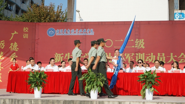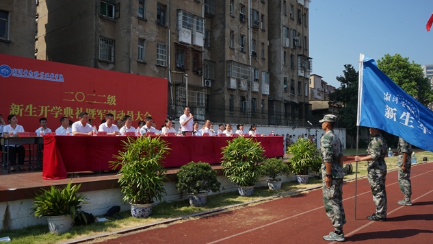 9月5日,我校2022级新生开学典礼暨军训动员大会分别在校本部操场及河西校区操场举行。全体校领导出席,校属各单位党政主要负责人、各二级学院学生工作人员、部分师生代表及2022级全体新生参加典礼。校党委书记刘建强为军训团授旗,校长廖晓燕发表讲话。大会由校党委副书记何文波主持。