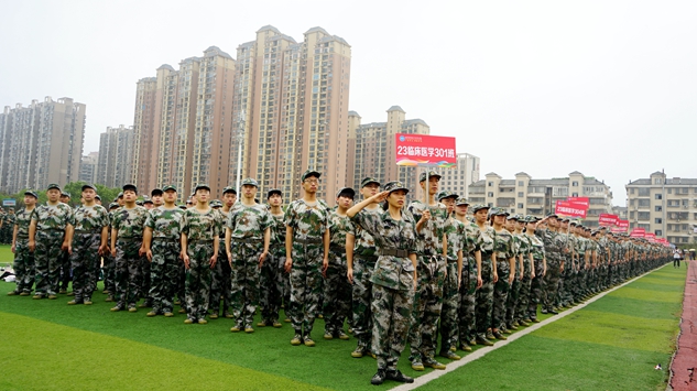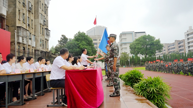 随着新生军训团主教官、副教官护卫团走向主席台,校党委书记刘建强为军训团授旗并宣布军训开始,为期两周的军训在嘹亮的校歌声中正式拉开帷幕。