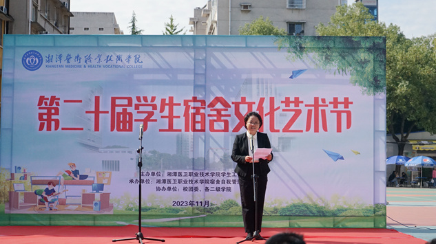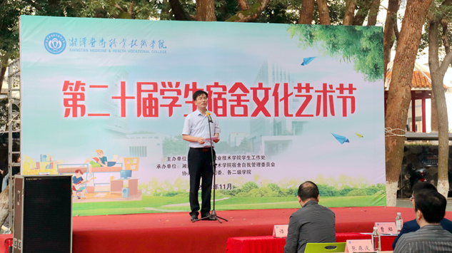 本网讯 11月7日,我校第二十届宿舍文化艺术节拉开序幕。本部校区与河西校区同时举行了启动仪式,校长廖晓燕、副校长成强出席活动并讲话,学生工作处、校团委负责人,各二级学院负责人、辅导员及近千名学生参加活动。