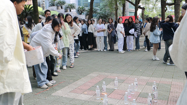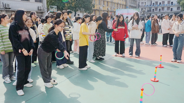 开幕式上,校团委和护理学院选送的节目赢得了同学们的阵阵掌声。之后开展的趣味套圈、计时跳绳、水杯吹乒乓球等趣味游艺活动让同学们兴致盎然,笑声、加油声此起彼伏。