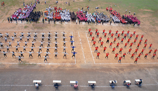 本次活动旨在促进学生锻炼身体,活跃文体生活,培养集体荣誉感。赛前,选定了护理学院教改实验班42名学生作为小教练,对全院推荐的183名学生领操员培训。经过两个月训练,各二级学院进行班级初赛推选和抽签,最终选出医学院赛区12个班级、院本部赛区18个班级参加决赛。比赛中同学们身着统一服装,精神抖擞,以规范的动作和青春的活力充分展现出当代大学生的风采。护理学院教改实验班还为大家带来了精彩展示。