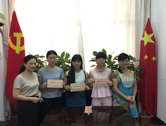 下午,湘潭市妇联领导来到我校,为3名家庭经济困难女生发放“春雷计划”助学金,每人人民币3000元,共计人民币9000元。