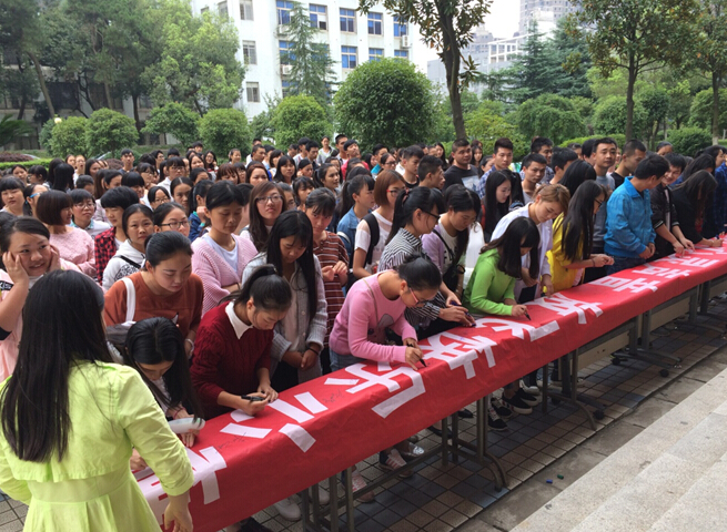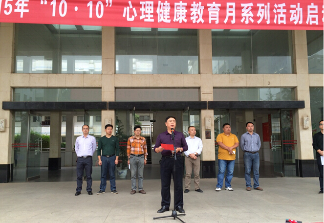 10月10日中午,我校2015年“10.10”心理健康教育活动月启动仪式在一教楼前坪举行。副校长左泽文出席并讲话,学生工作处、二级学院负责人和学生代表300余人参加活动。