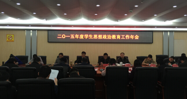 12月30日,我校2015年度学生思想政治教育工作年会在校本部护理楼8楼会议室召开,校党委书记杨南南出席会议并讲话,校党委副书记张国强宣读获奖表彰名单,副校长左泽文主持会议,相关处室院部主要负责同志、全体政治辅导员和思政课教师、优秀班主任代表共计60余人参加会议。