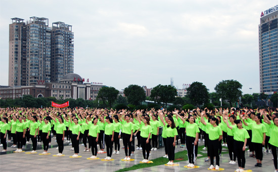 6月18日上午,湘潭市纪念毛泽东题词“发展体育运动,增强人民体质”64周年暨全民健身与奥运同行•万人同跳广场舞活动在东方红广场举行。上万名广场舞爱好者在《中国味道》欢快的旋律中舞动,刮起一阵绿色“旋风”。我校2000余名学子参加了此次活动,充分展示了我校青年大学生的青春风采。