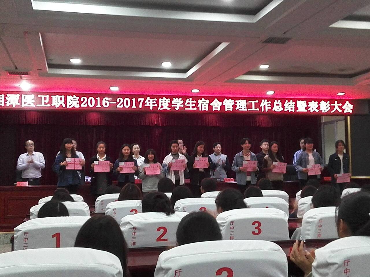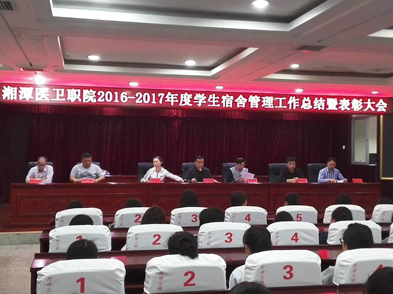 为总结一年来我校学生宿舍管理工作取得的成绩,表彰涌现出的先进集体和优秀个人,推进学生宿舍“卫生、文明、安全”创建,营造学生宿舍良好育人环境,4月7日,我校召开2016-2017学年度学生宿舍管理工作总结表彰大会,学生工作处、二级学院、宿舍管理科相关负责人参加了会议。