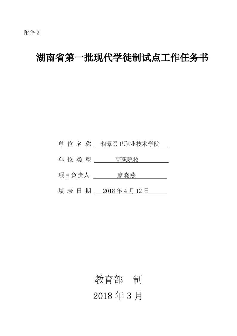湖南省第一批现代学徒制试点工作任务书
