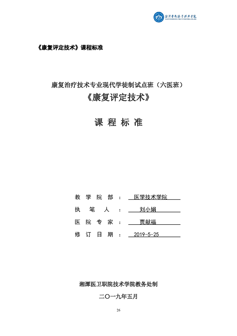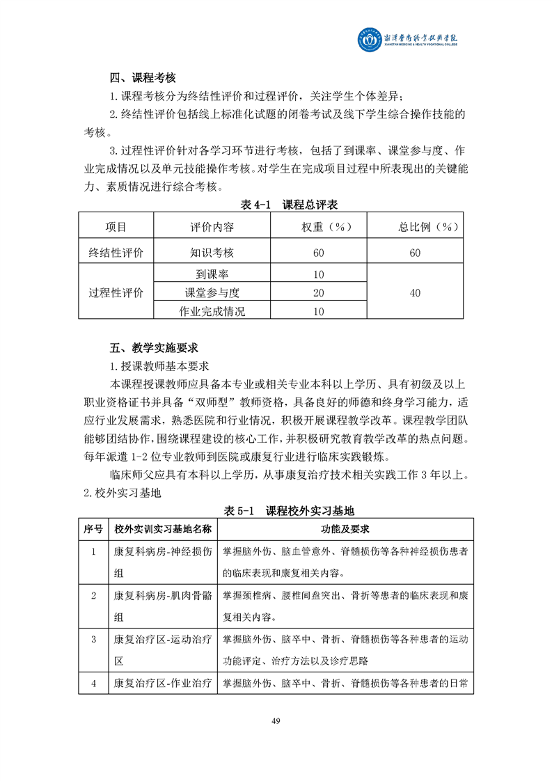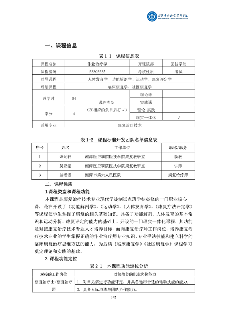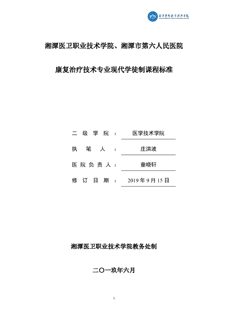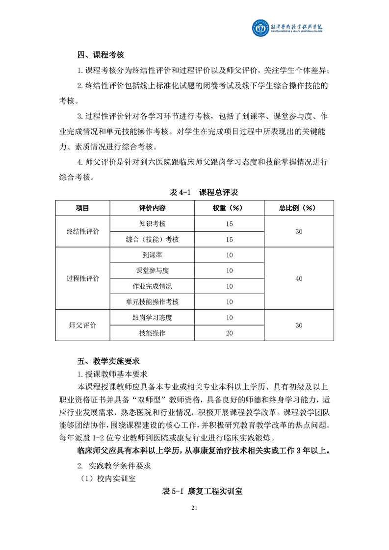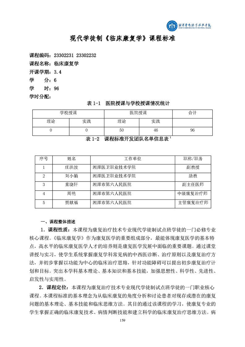 康复治疗技术专业现代学徒制课程标准