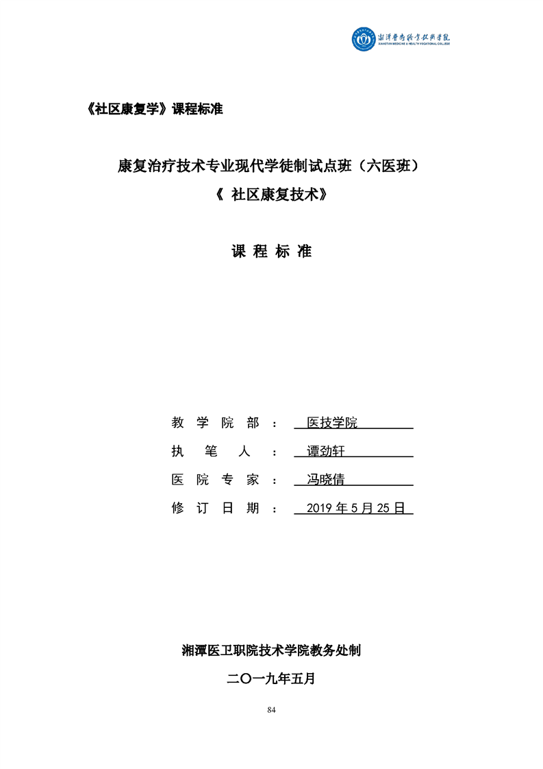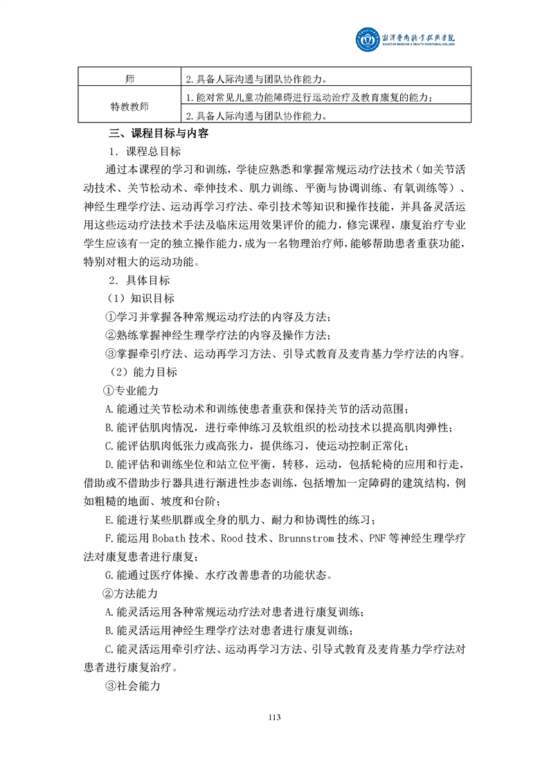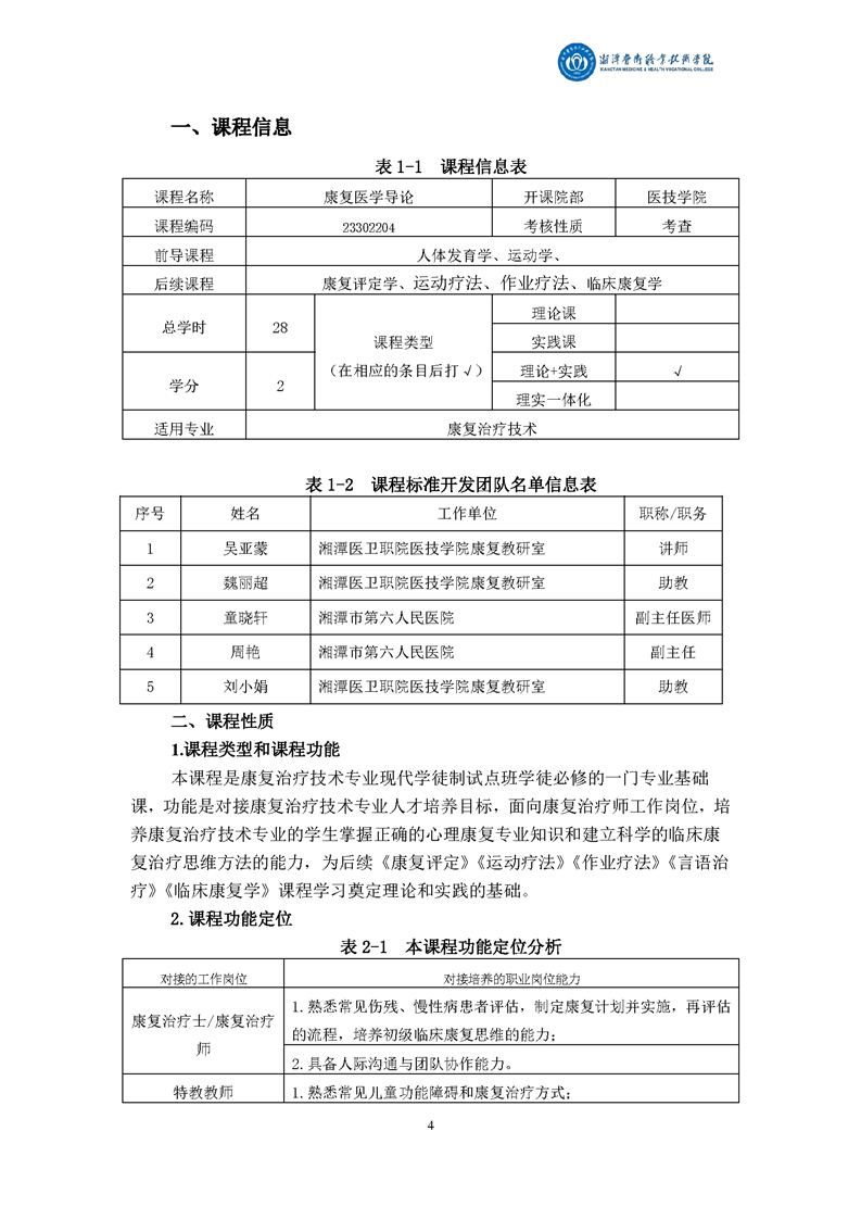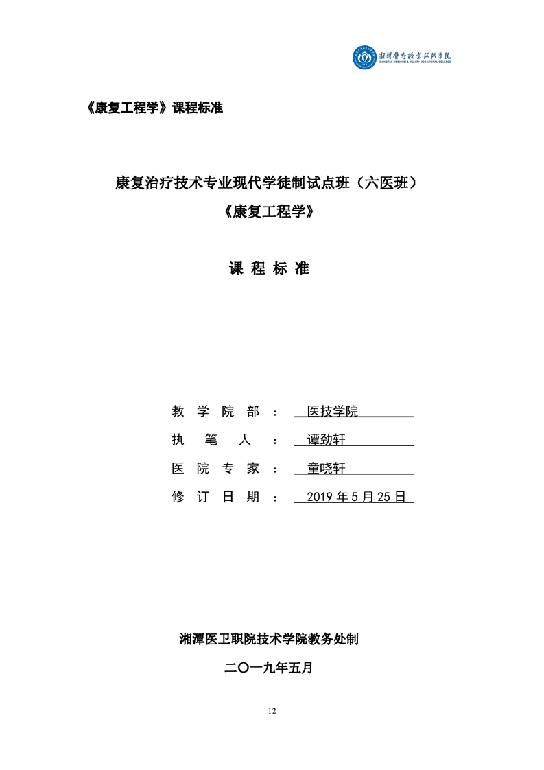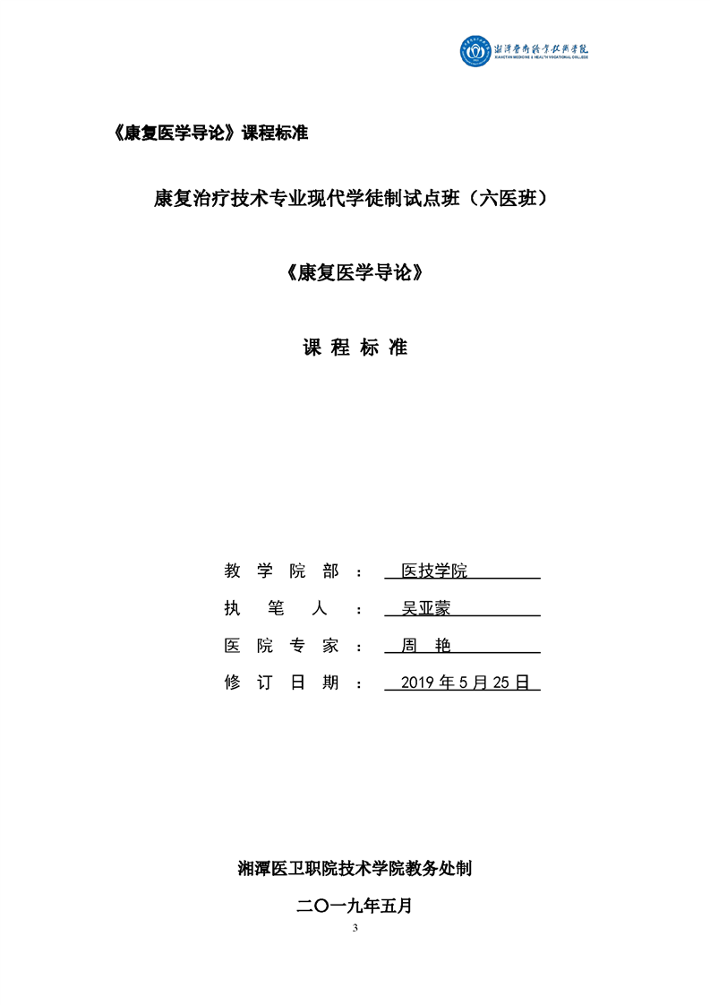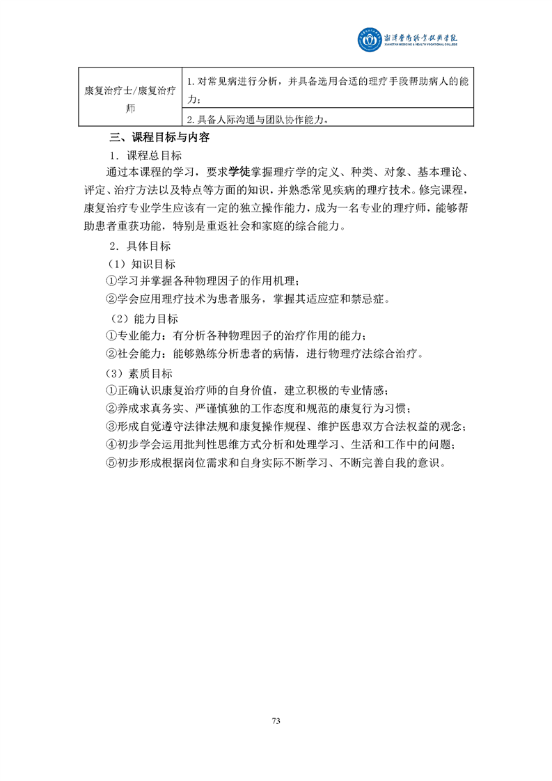 康复治疗技术专业现代学徒制课程标准