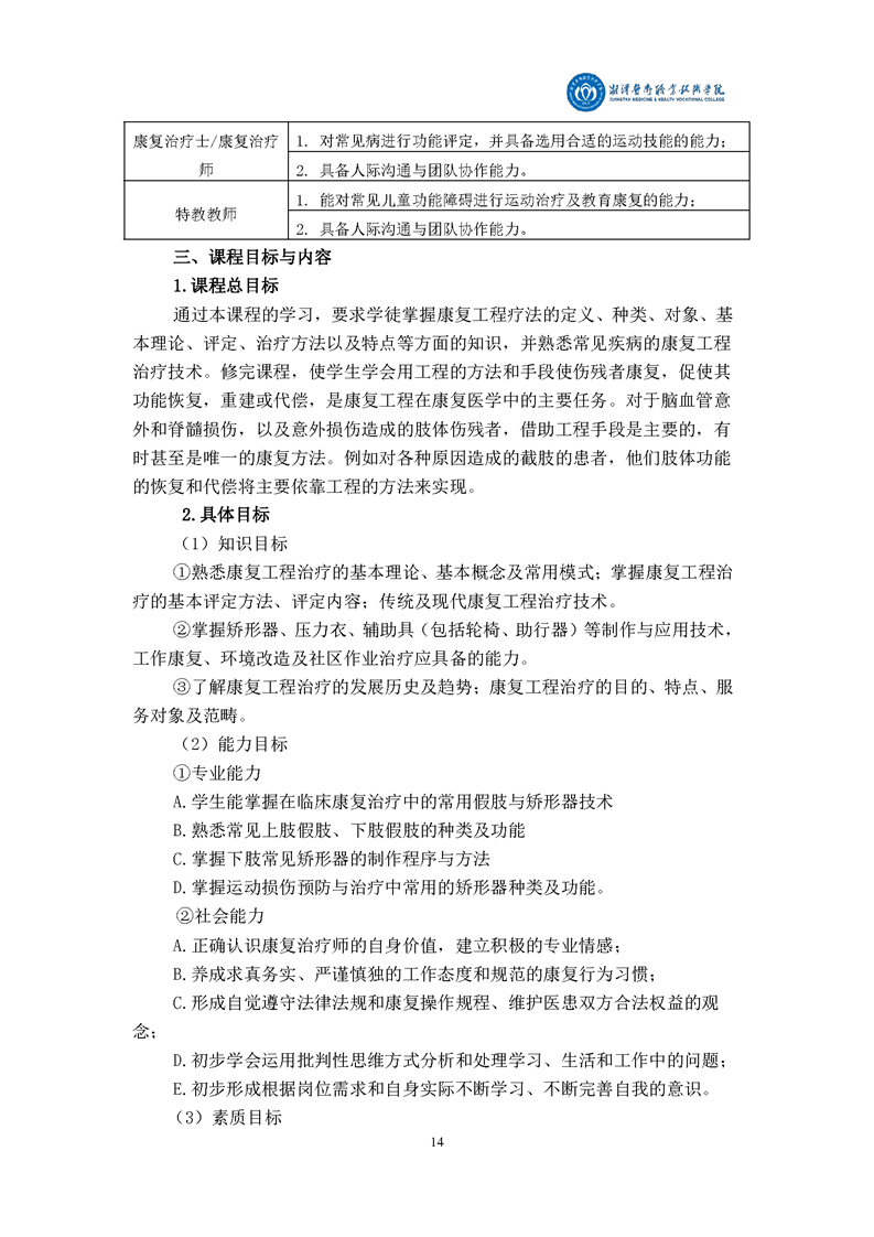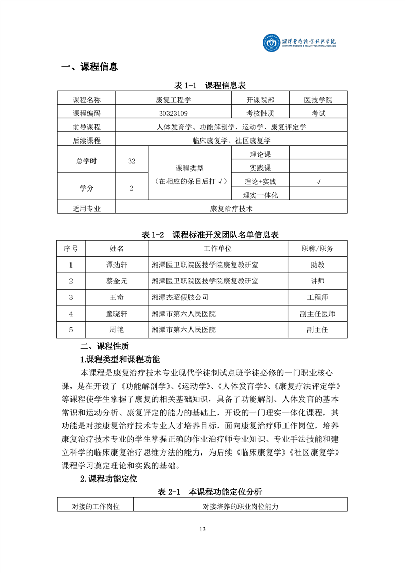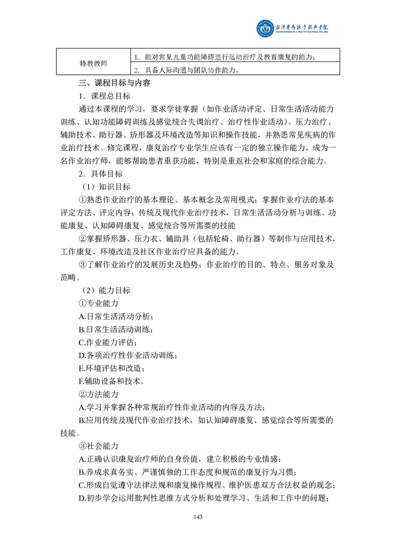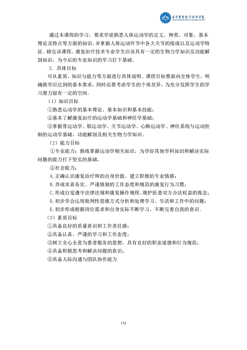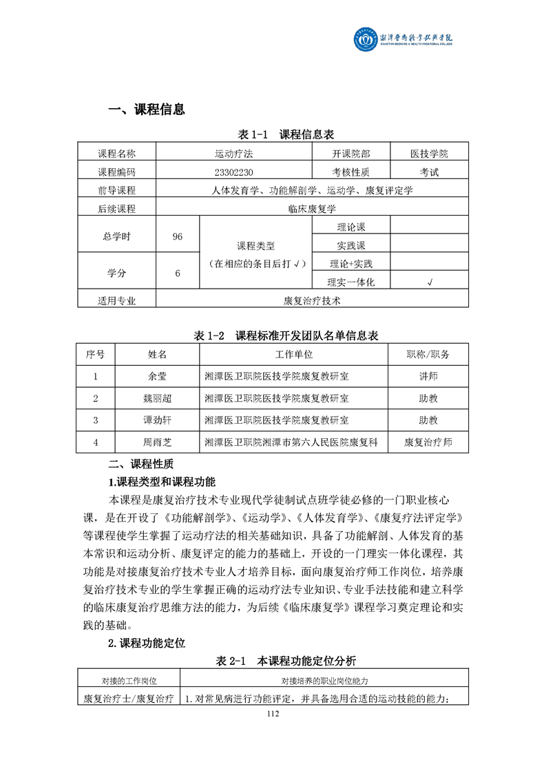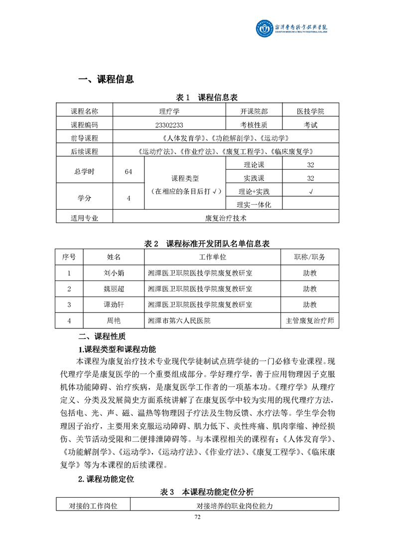 康复治疗技术专业现代学徒制课程标准
