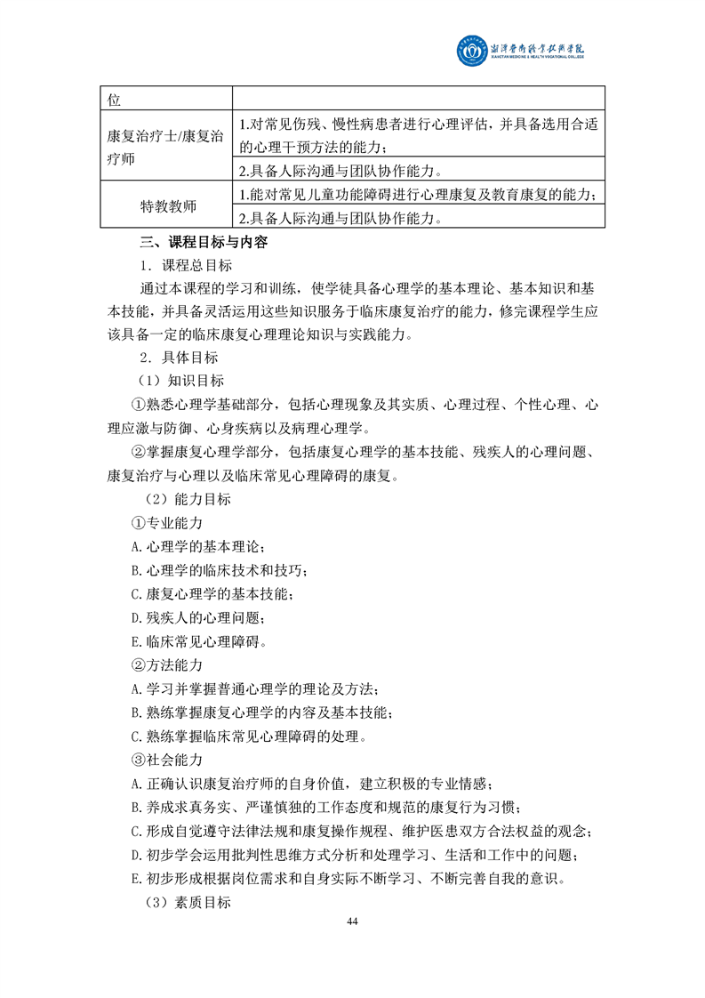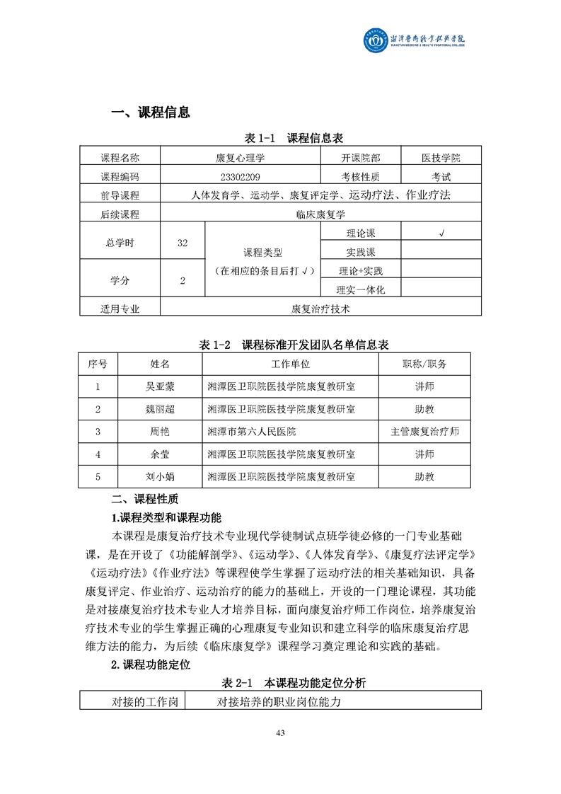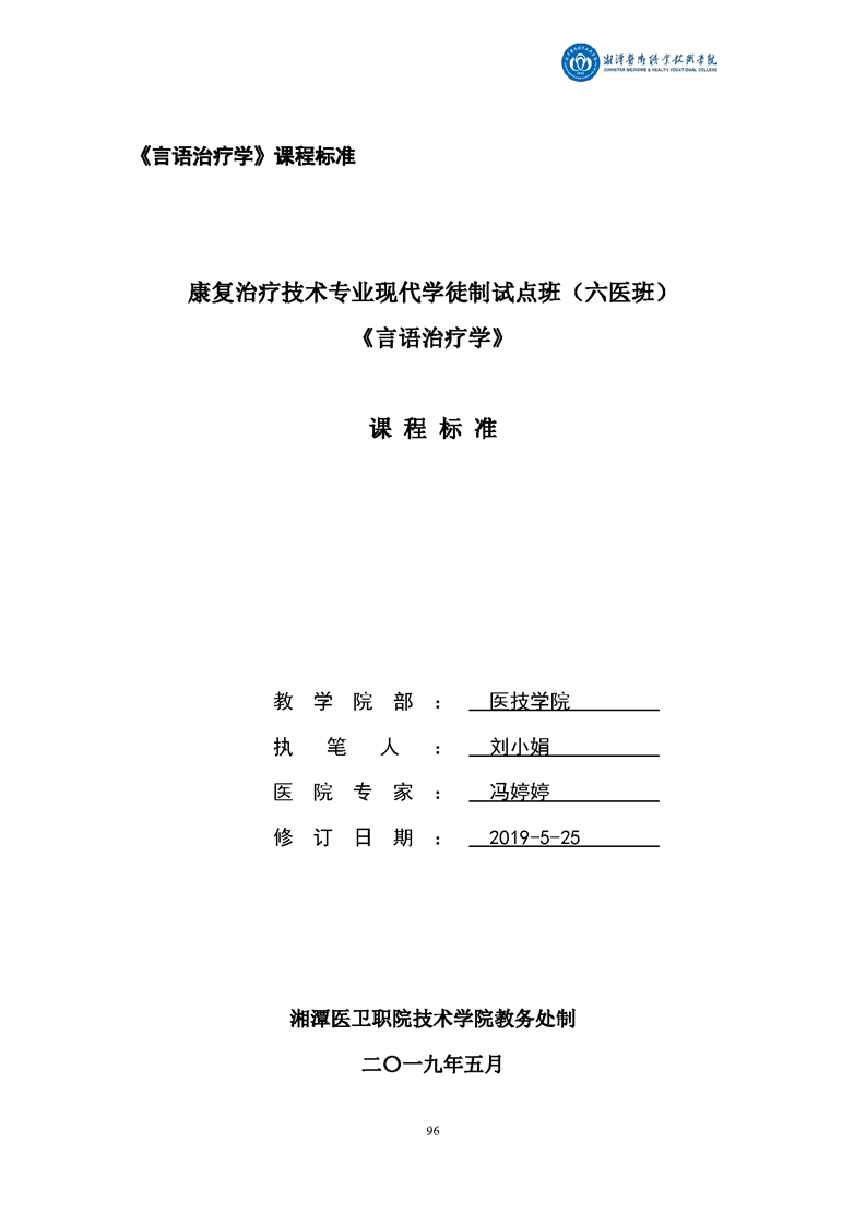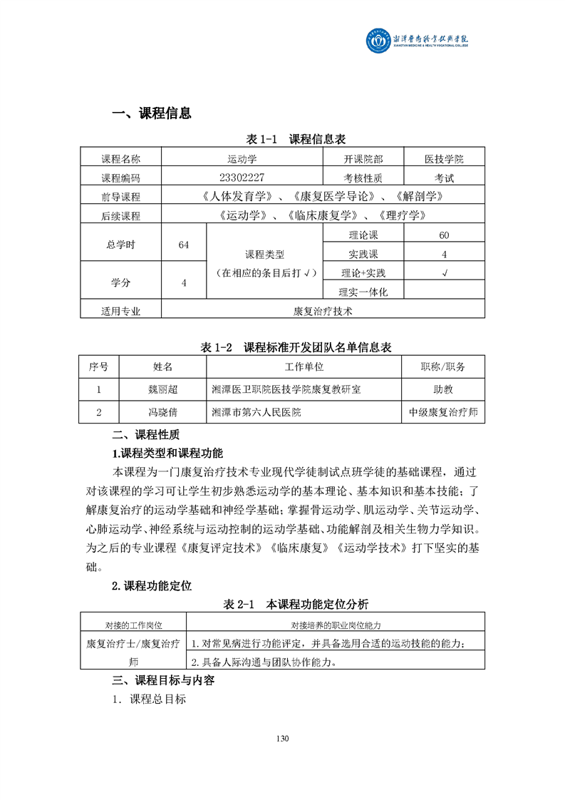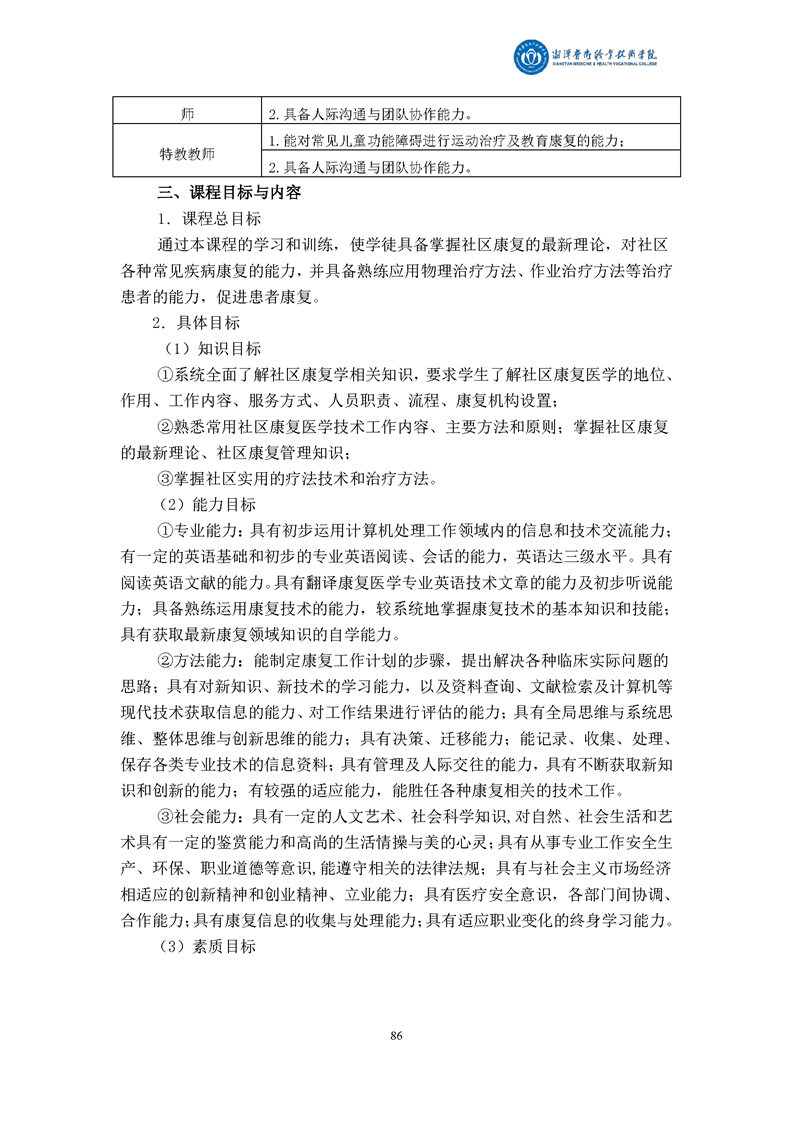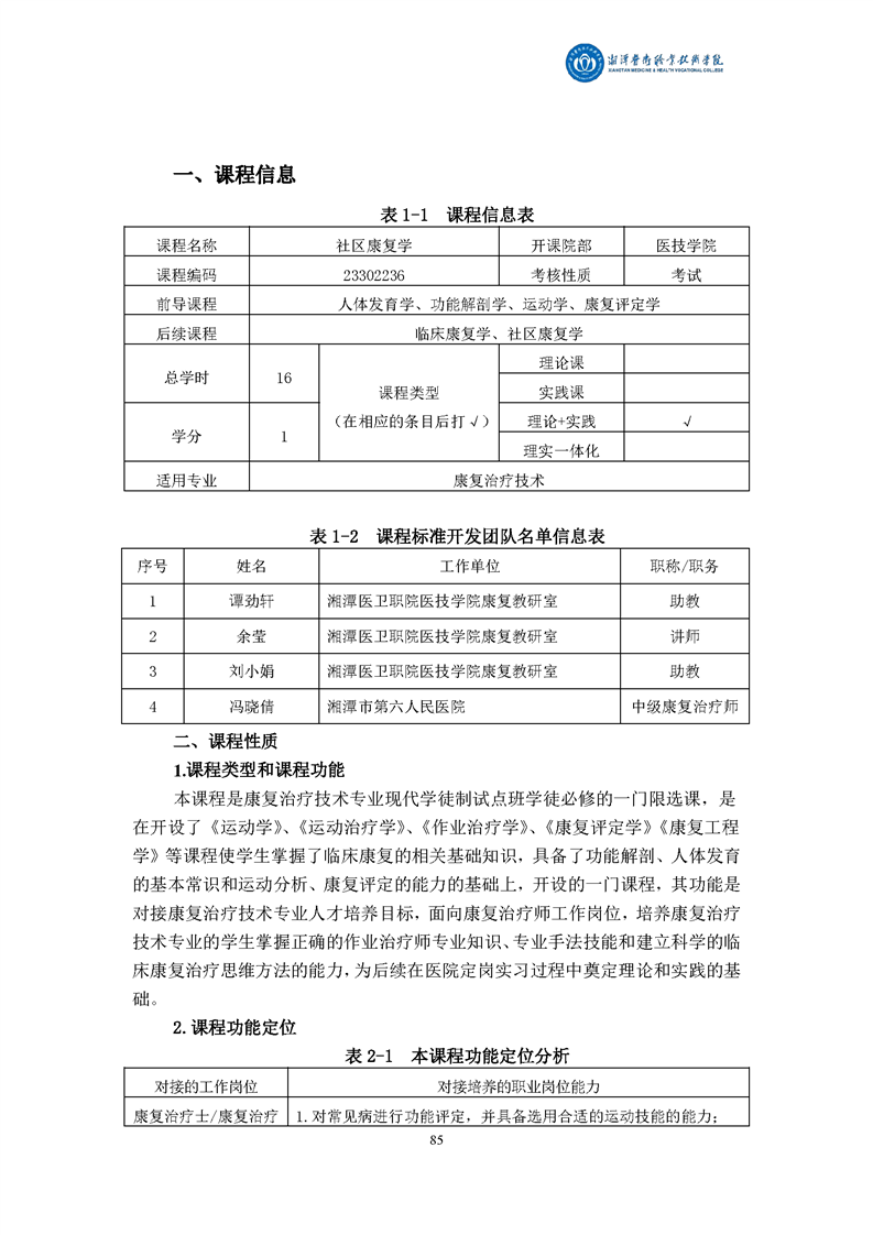 康复治疗技术专业现代学徒制课程标准