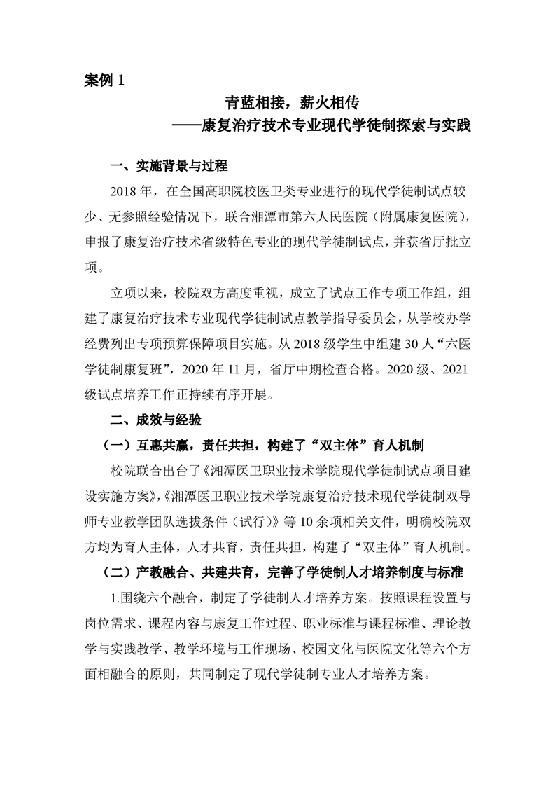 案例1:康复治疗技术专业现代学徒制的探索与实践