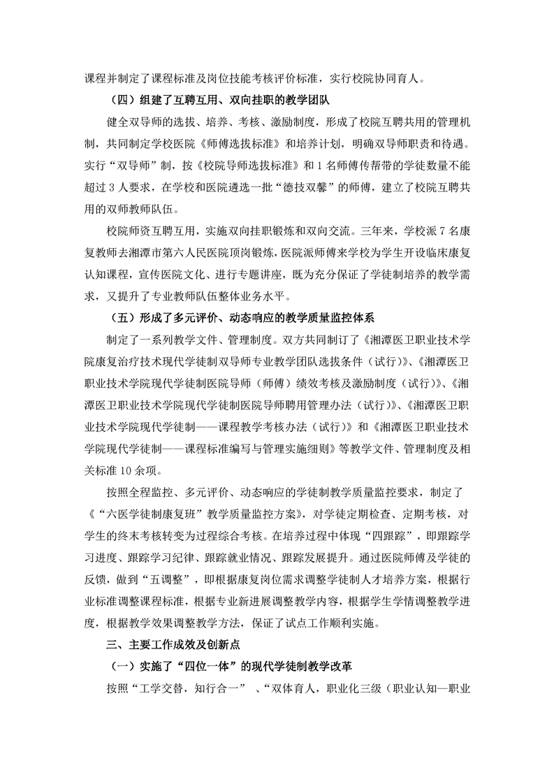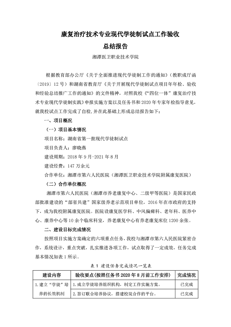 康复治疗技术专业现代学徒制试点工作验收总结报告