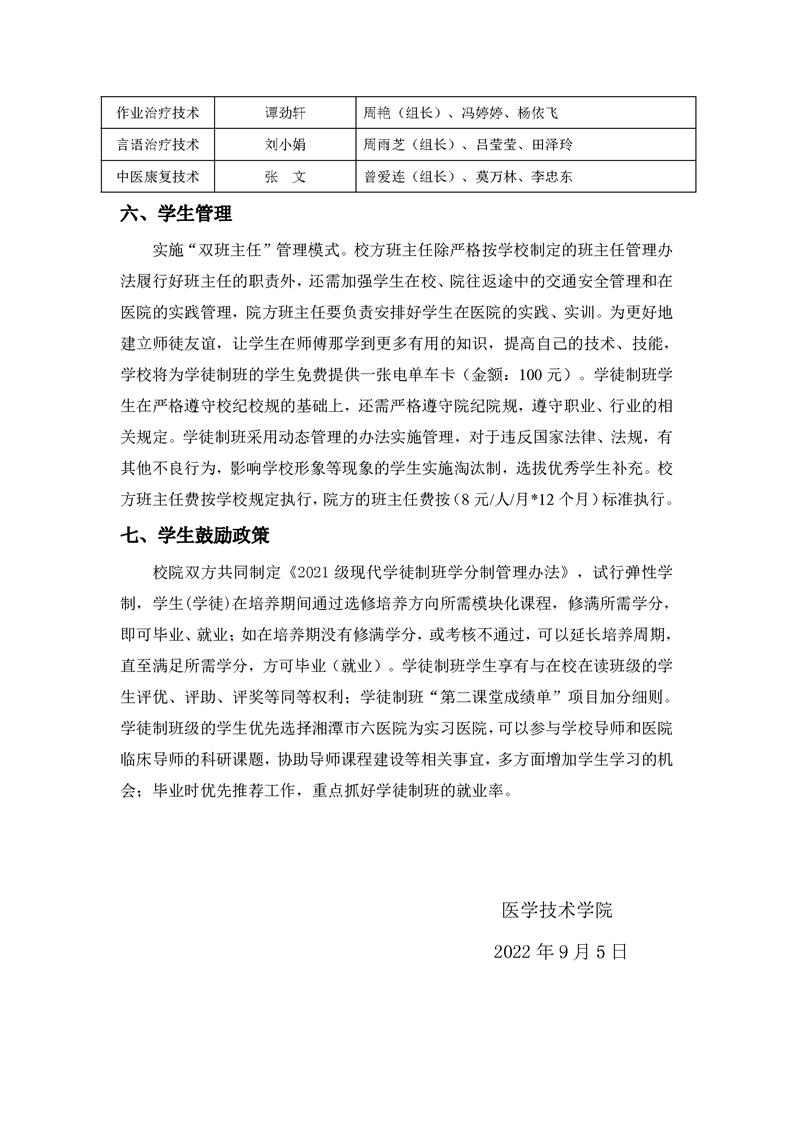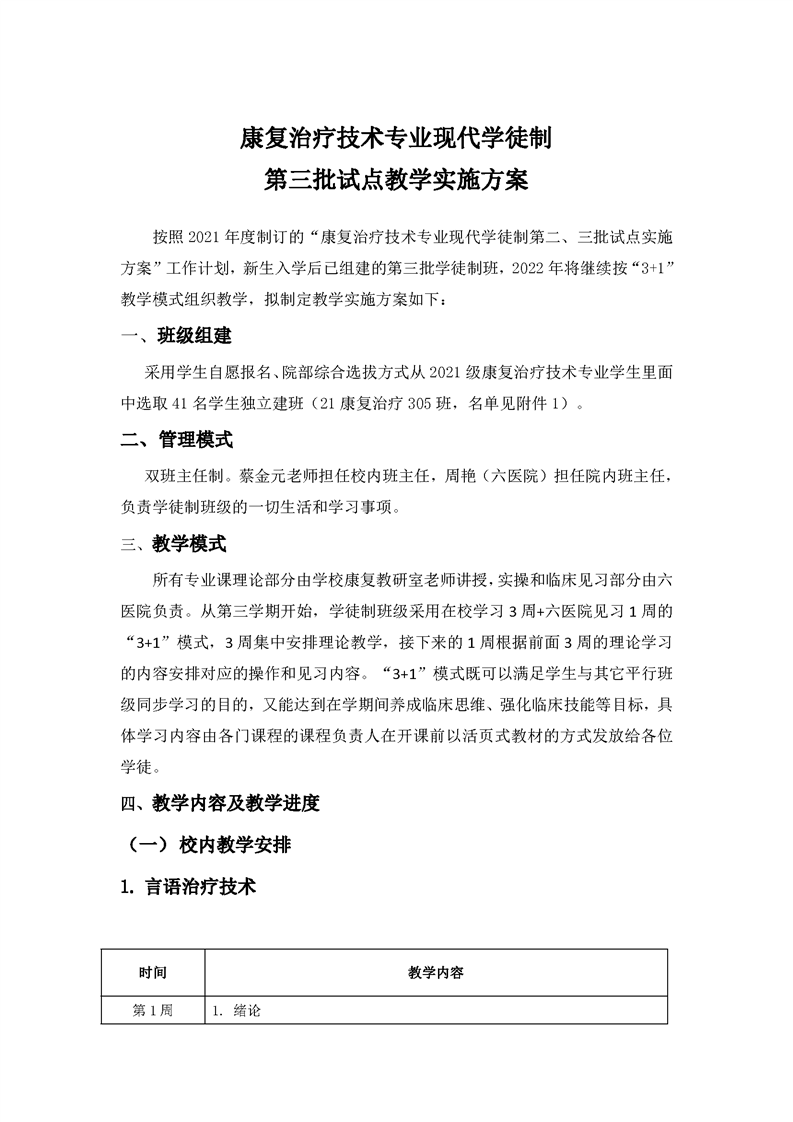 康复治疗技术专业现代学徒制第三批试点教学实施方案