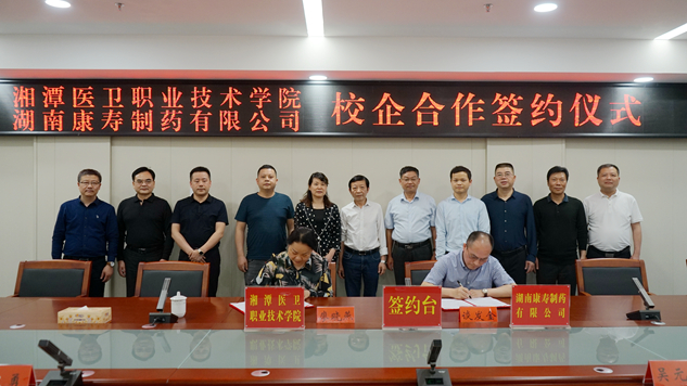 本网讯 为推进校企合作,产教融合,实现半岛平台与企业资源共建共享,有效提高我校药学、中药学专业人才培养质量,4月12日,我校与湖南康寿制药有限公司校企合作签约仪式在综合楼一会议室举行。湖南康寿制药有限公司董事长兼总经理谈发金、高级顾问李世奇、法律顾问田文、党支部书记总经理助理王志锋、财务总监蒋志敏、销售总监谢迅,我校校长廖晓燕、副校长何文波、副校长吴元清出席签约仪式。半岛平台招生与就业指导处、教务处、医学技术学院相关负责人等参加。仪式由副校长何文波主持。