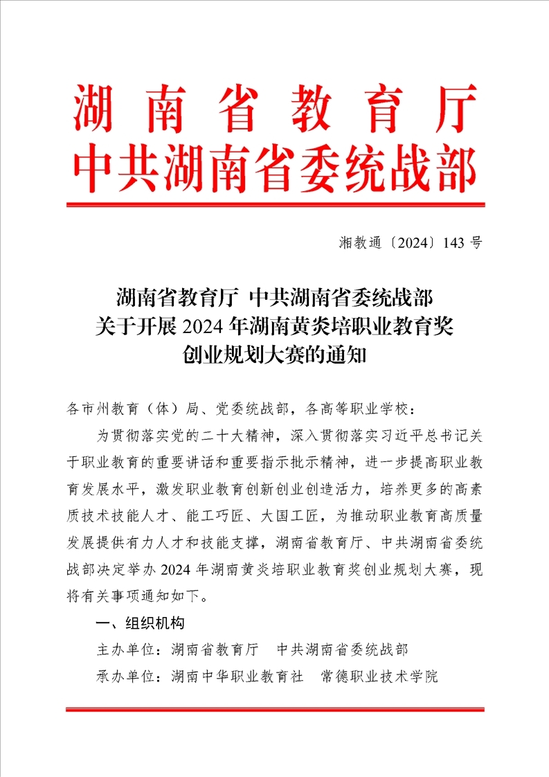 关于开展2024年湖南黄炎培职业教育奖创业规划大赛的通知