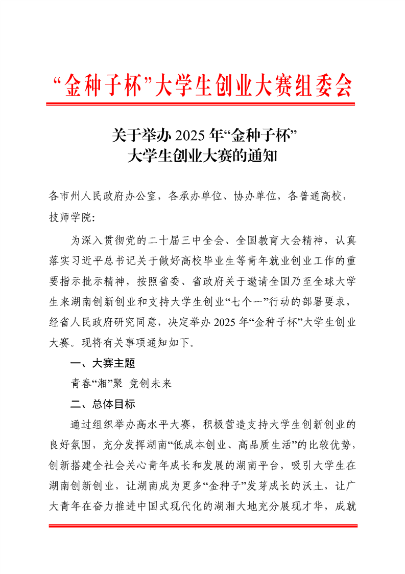 关于举办2025年“金种子杯”大学生创业大赛的通知
