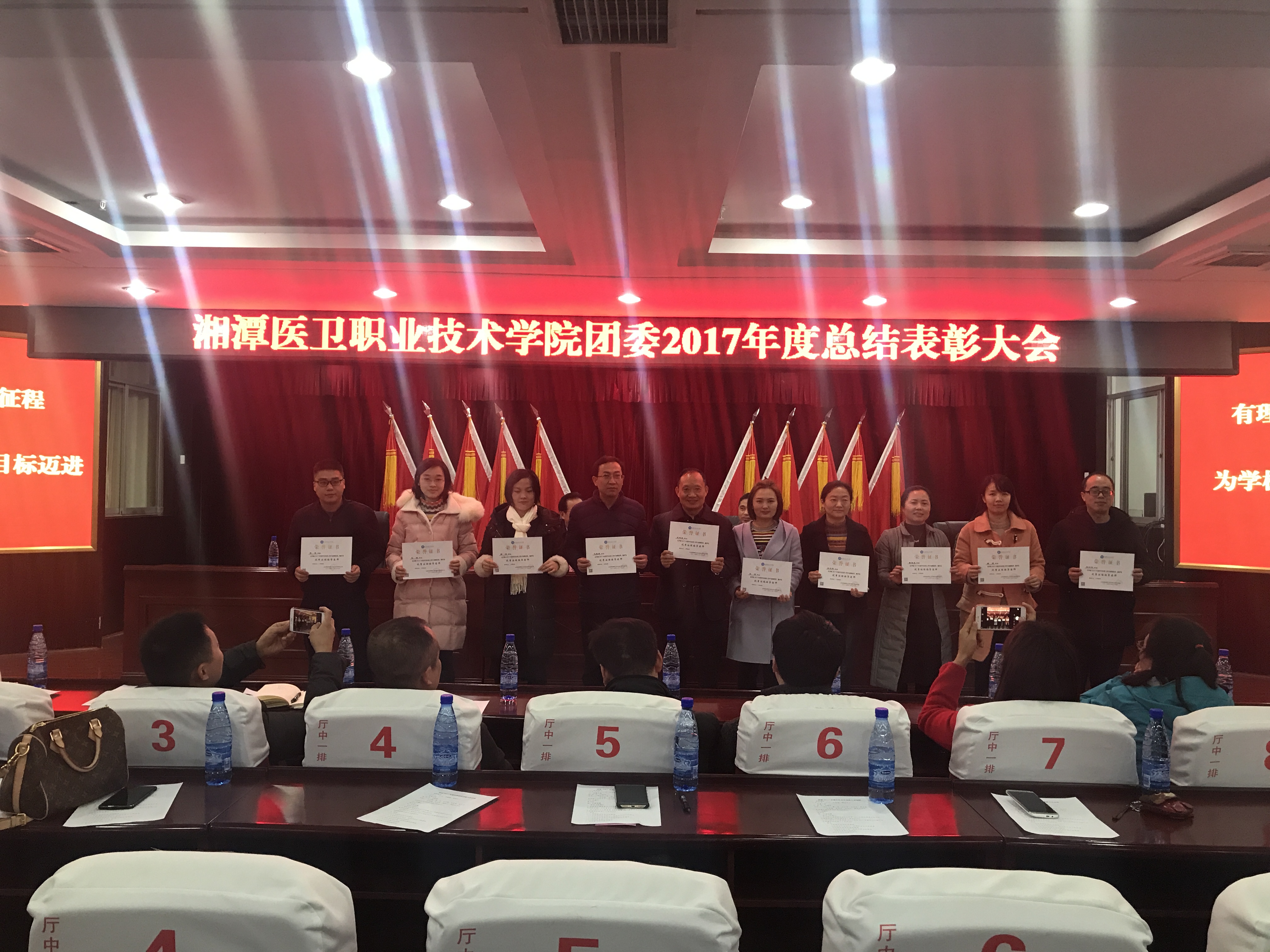 会上,党委组织宣传部部长谭进宣读了学生会年度工作表彰通报,学工处长汪石果宣读了学生社团年度工作表彰通报。护理学院(本部)学生会分会、护理学院(河西)学生会分会和医疗设备与管理学院学生会分会获评2017年度“优秀学生会分会”,校团委办公室等14个部门获评2017年度“优秀团学部门”,彭书婷等64名同学获评2017年度“优秀学生会干部”;中英文演讲与口才协会等6个社团获评“五星级社团”;梦逸礼仪队等8个社团获评“四星级社团”;校心理健康协会联合会等10个社团获评“三星级社团”;谭燕等10名同志获评“优秀社团指导老师”;罗铜等100名同学获评“优秀社团干部”;官玲等121名同学获评“优秀社团会员”。