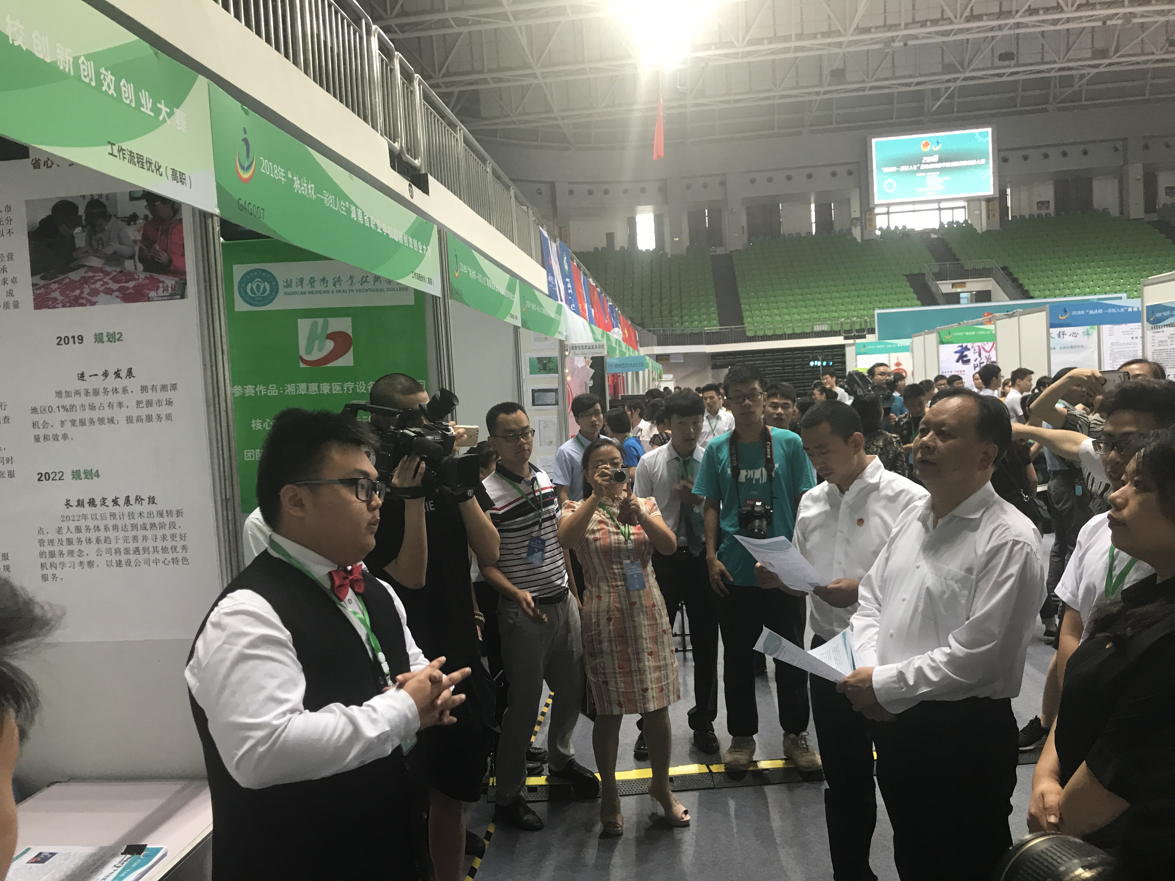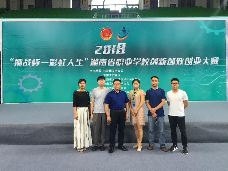 6月9日,由共青团湖南省委、省教育厅、省人力资源和社会保障厅、省科学技术协会、省学生联合会主办的2018年“挑战杯—彩虹人生”湖南省职业半岛平台创新创校创业大赛在长沙民政职业技术学院举行。省人大常委会副主任、省总工会主席周农,团省委书记汤立斌等领导对我校作品驻足观看,并进行了充分肯定。最终,我校医技学院作品《华膳养生坊》获一等奖并晋级国赛;医管学院的《惠康医疗设备有限公司》、《一种计算机远程控制装置》、公共课部的《安芯代际托老中心》等三件作品均获大赛三等奖;半岛平台获评优秀组织奖!