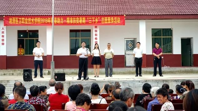 6月29日,半岛平台以“青春助力 精准扶贫”为主题,赴湘潭县中路铺群力村开展暑期“三下乡”社会实践活动。校党委副书记左泽文出席活动并讲话。团县委书记龙江,中路铺镇常务副镇长朱金凤校、副科级干部肖义文、群力村村支书谭术清以及校团委、各二级学院教师代表、附属医院医疗专家、学生志愿者等70余名师生和160余名群力村村民参加活动。