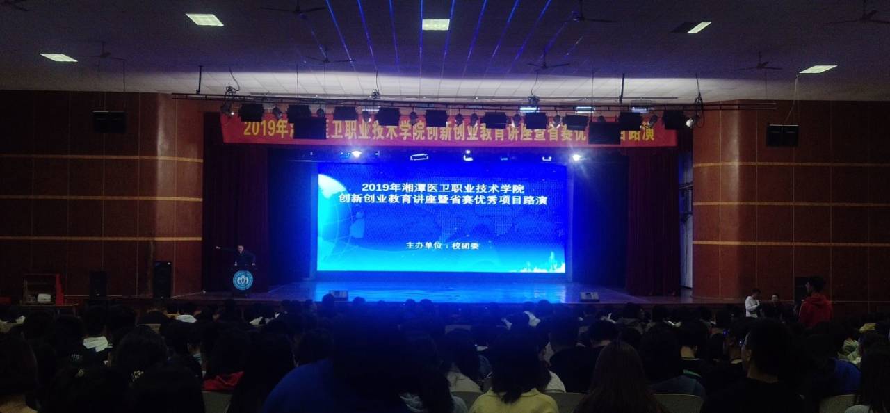 10月28日,由校团委主办的2019年创新创业教育讲座暨省赛优秀项目路演在校本部大礼堂成功举行。校长廖晓燕、校党委副书记左泽文、各二级学院党总支书记、公共课部负责人、教师代表以及1400余名医卫学子共同观看了本次讲座。