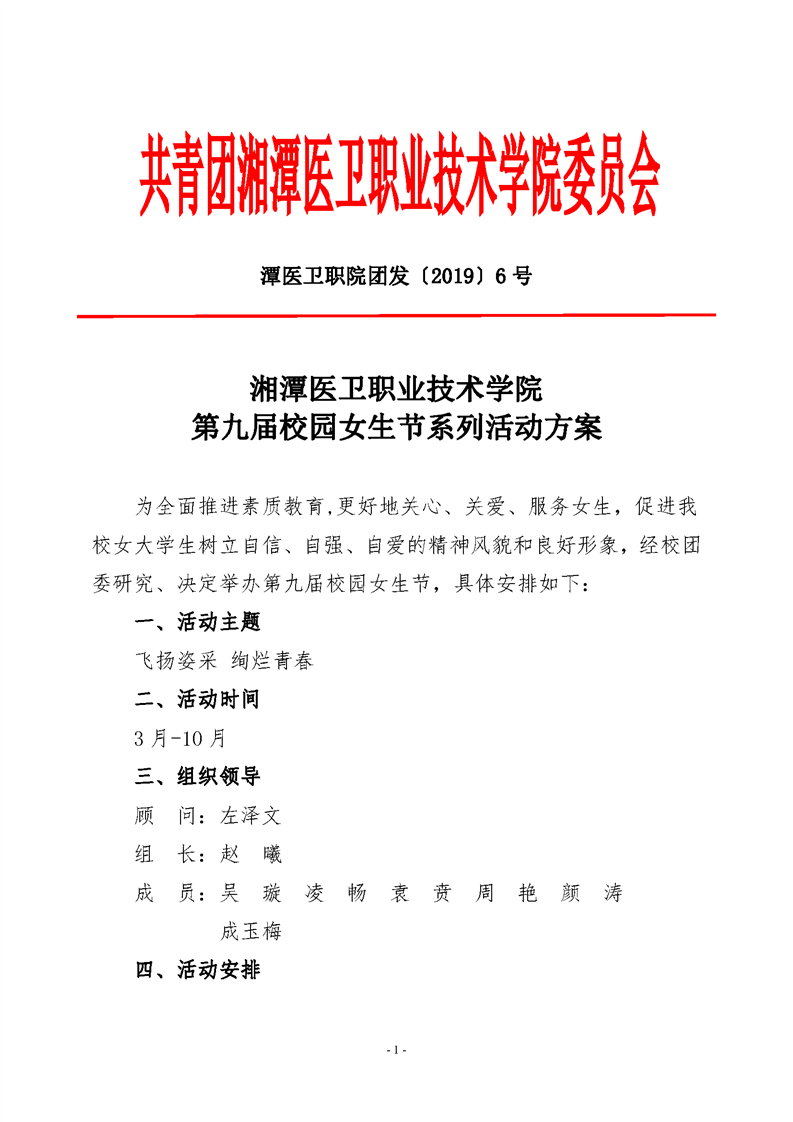 潭医卫职院团发[2019]6号:半岛(中国)第九届校园女生节系列活动方案