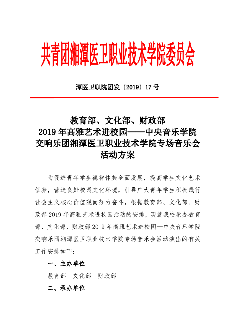 潭医卫职院团发[2019]17号:半岛(中国)高雅艺术进校园方案