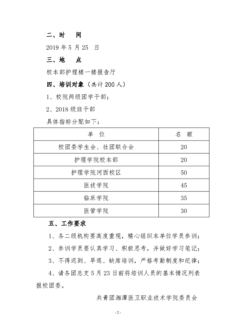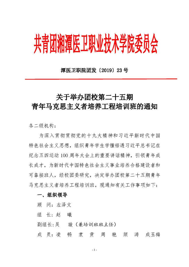 潭医卫职院团发[2019]23号:潭医卫职院关于举办团校第二十五期青年马克思主义者培养工程培训班的通