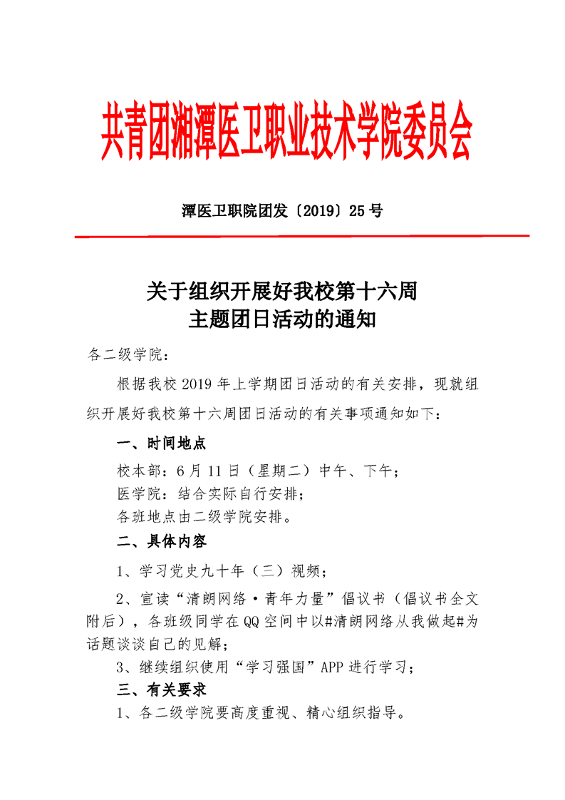 潭医卫职院团发[2019]25号:关于组织开展好我校第十六周主题团日活动的通知(2)