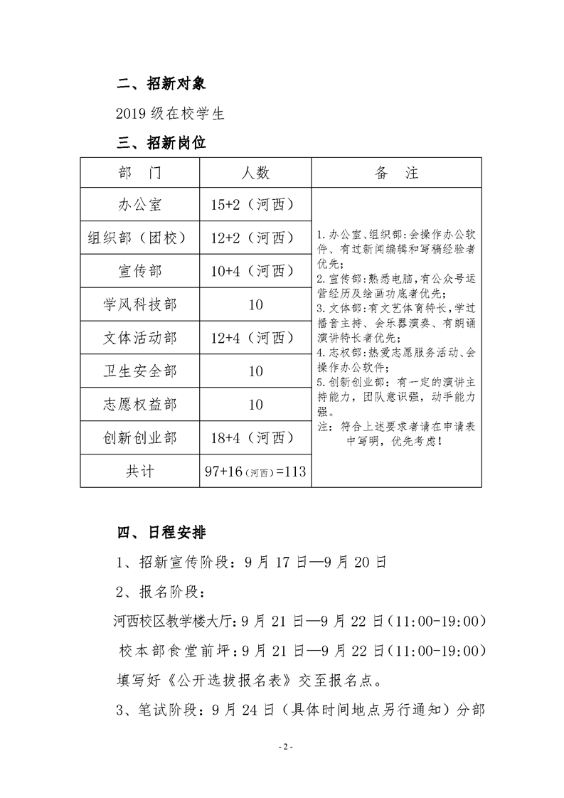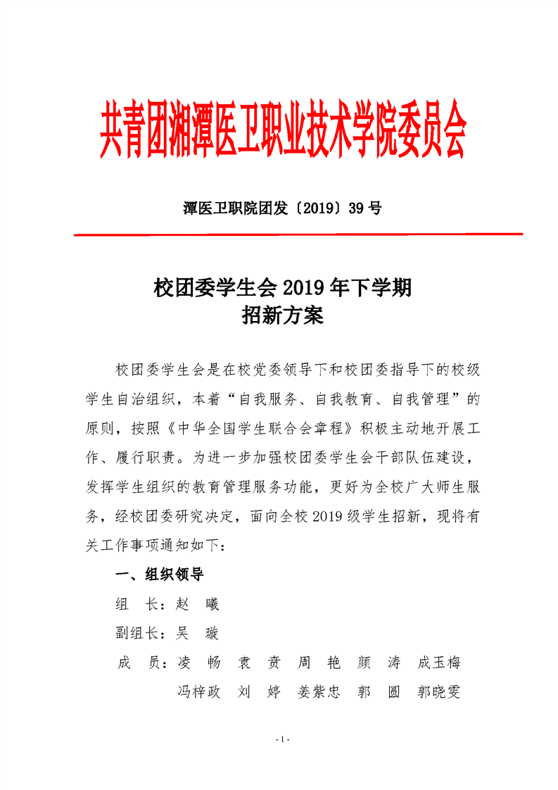 潭医卫职院团发[2019]39号:校团委学生会2019年下学期招新方案