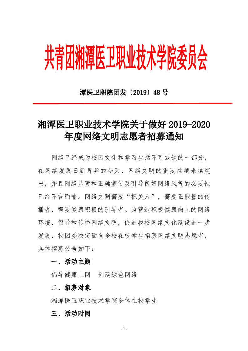 潭医卫职院团发[2019]48号:半岛(中国)2019年网络文明传播志愿者招募通知
