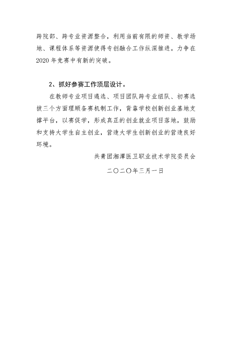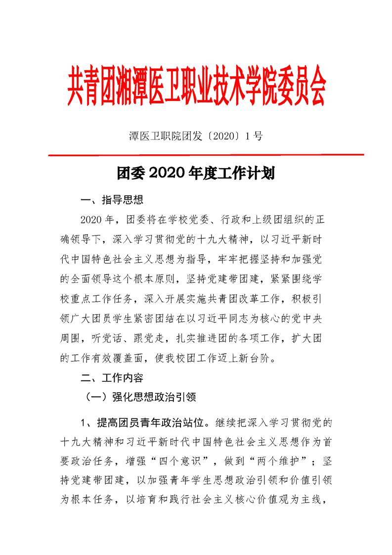 潭医卫职院团发[2020]1号:团委2020年度工作计划