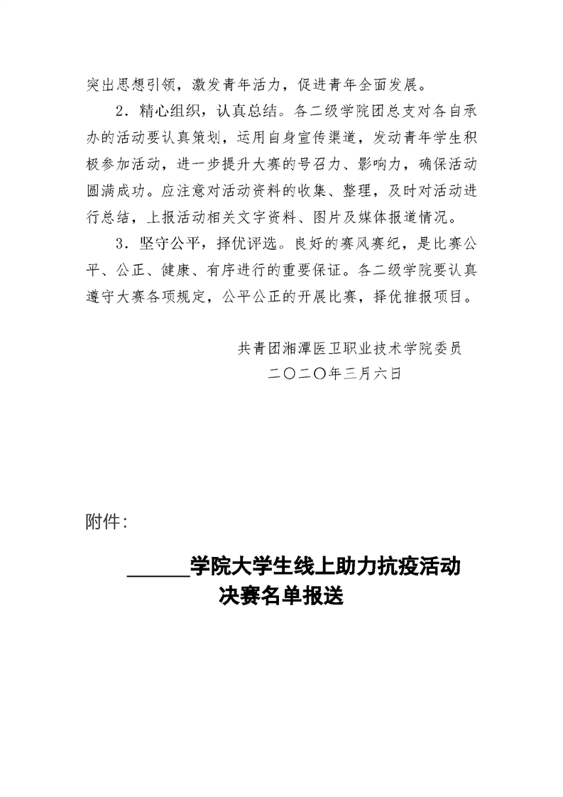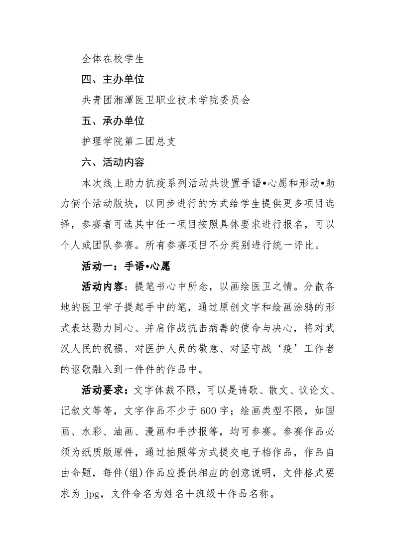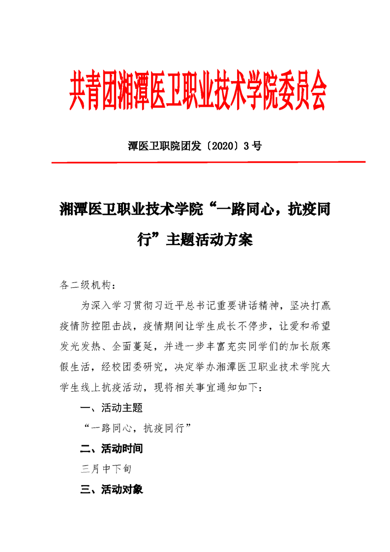 潭医卫职院团发[2020]3号:半岛(中国)“一路同心,抗疫同行”活动方案