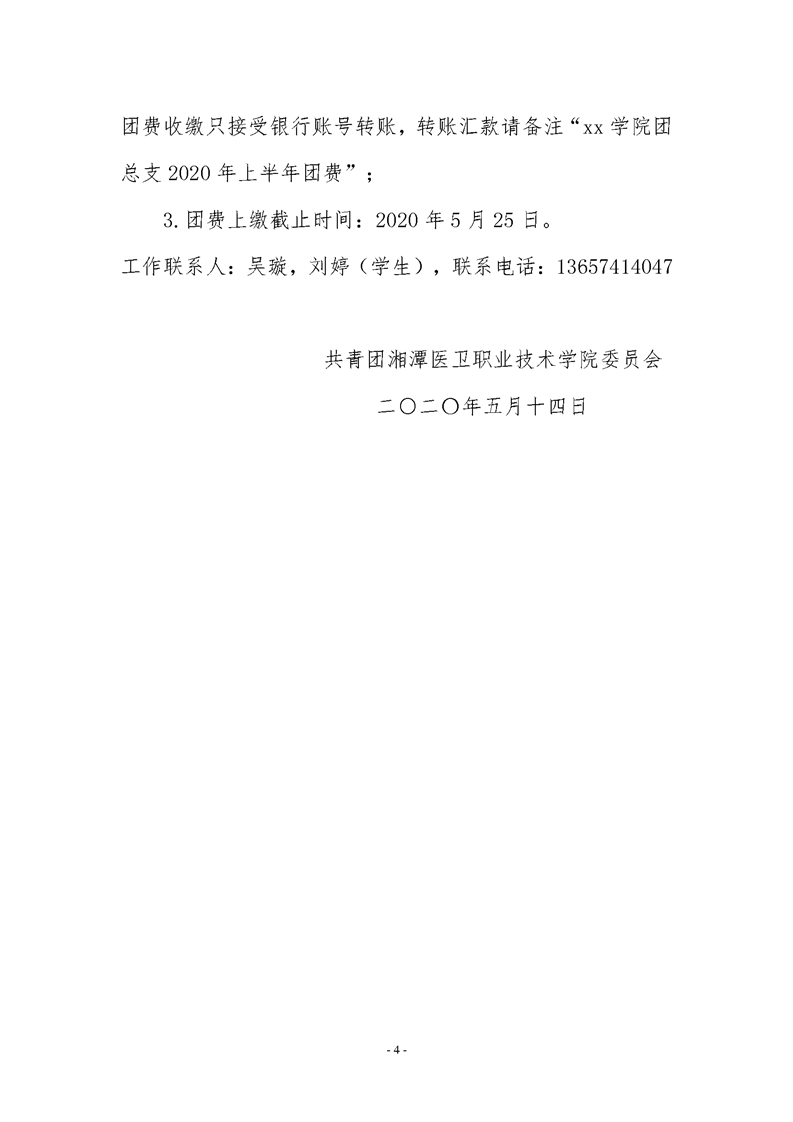 潭医卫职院团发[2020]8号:关于做好2020年上半年团内统计和团费收缴工作的通知