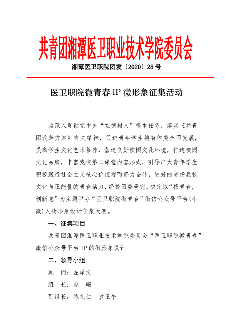 潭医卫职院团发[2020]28号:2020年医卫职院微青春IP微形象设计征集方案